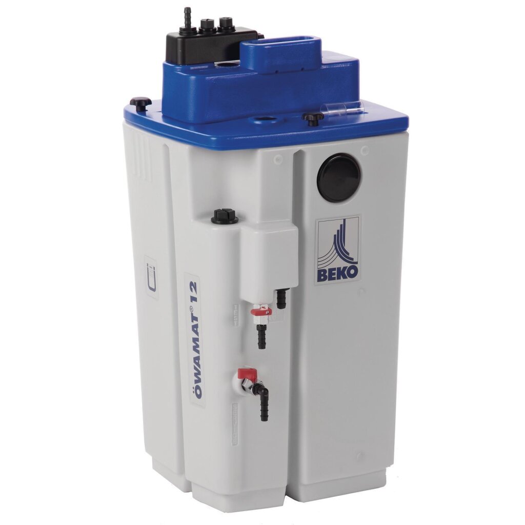 - Im Trennbehälter setzt sich das Öl durch Schwerkrafttrennung an der Oberfläche ab und wird in den überlaufsicheren Ölauffangbehälter (Version auf Anfrage erhältlich) geleitet.