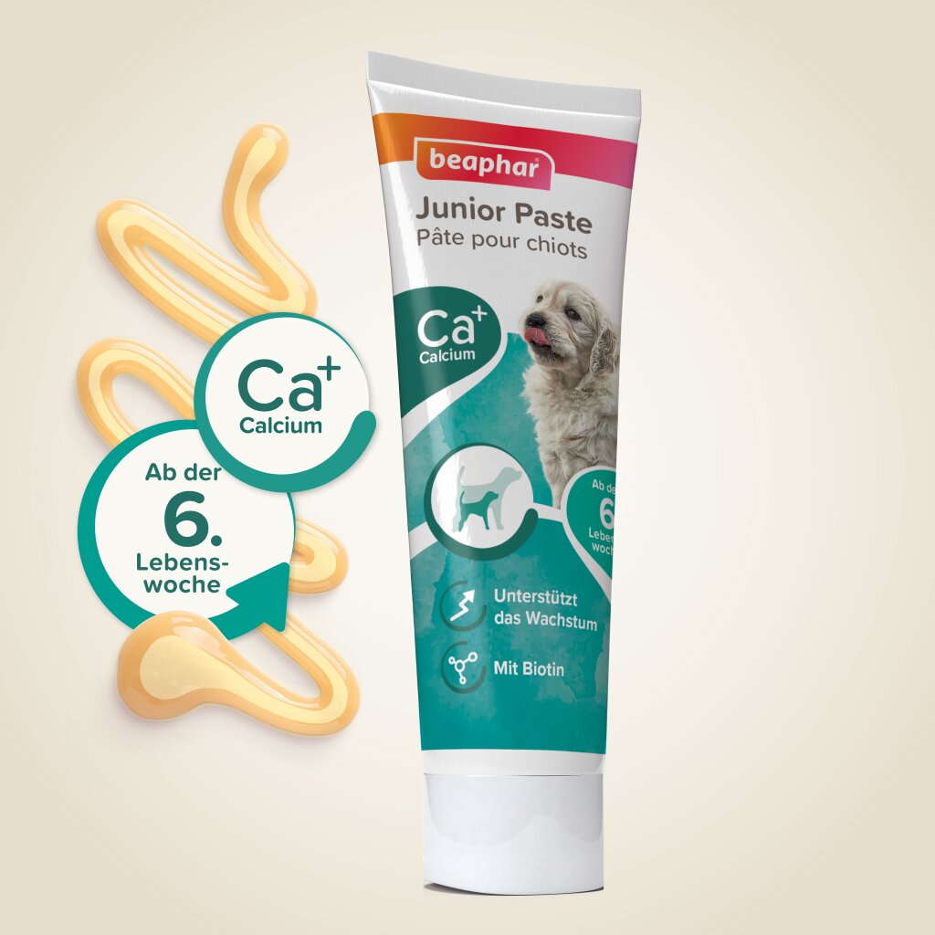 Das in der Beaphar Junior-Paste enthaltene Kalzium ist mit dem Kalzium aus der Muttermilch vergleichbar und deshalb besonders leicht verdaulich.