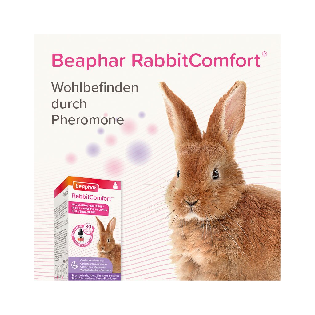 Das in Beaphar RabbitComfort® verwendete Pheromon ist eine einfache und effektive Lösung, die Kaninchen eine andauernde Wohlfühl-Atmosphäre schafft und dabei hilft, unerwünschtes Verhalten zu reduzieren.