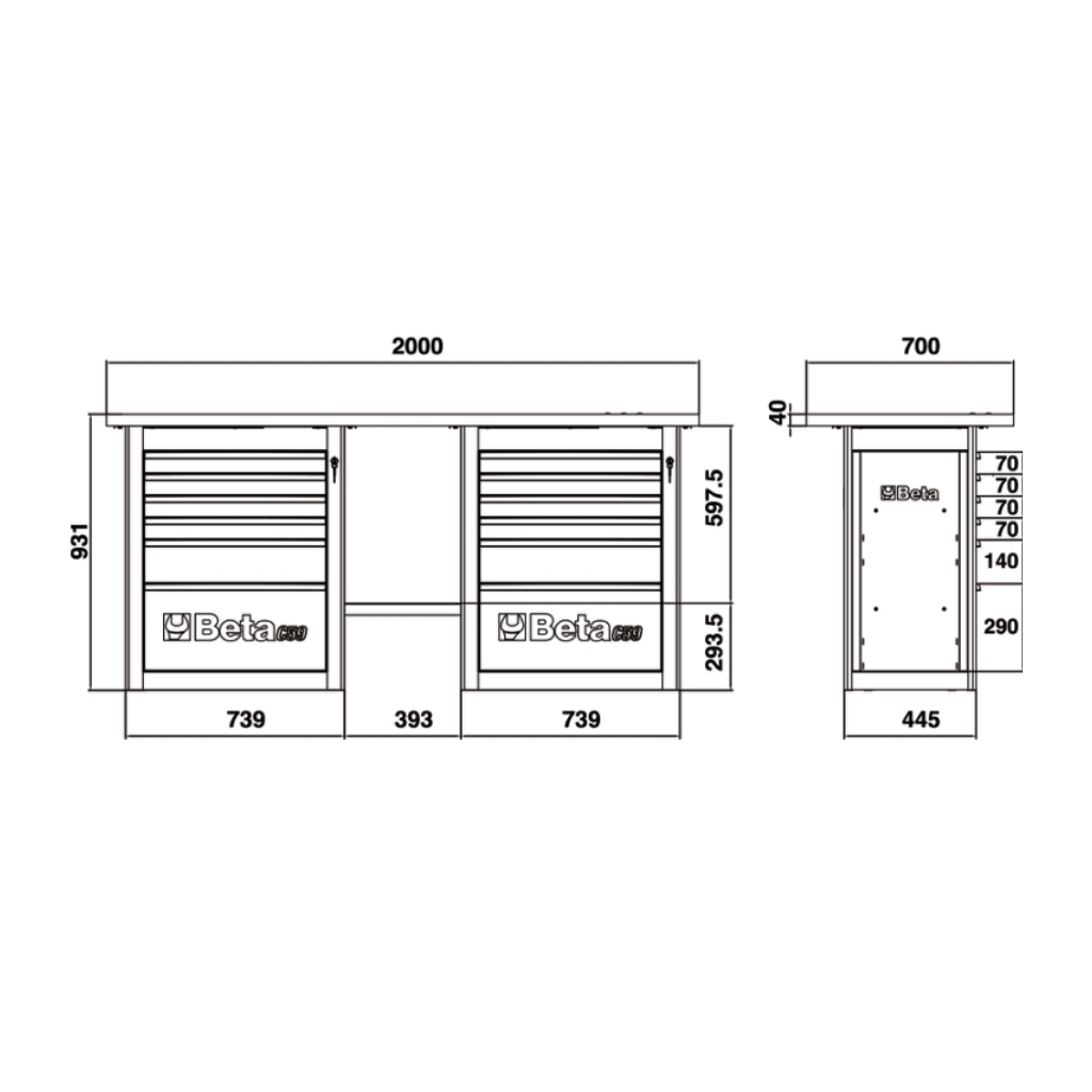 BETA Werkbank "Endurance" mit 2 Schubladenblöcken bestehend aus sechs Schubladen