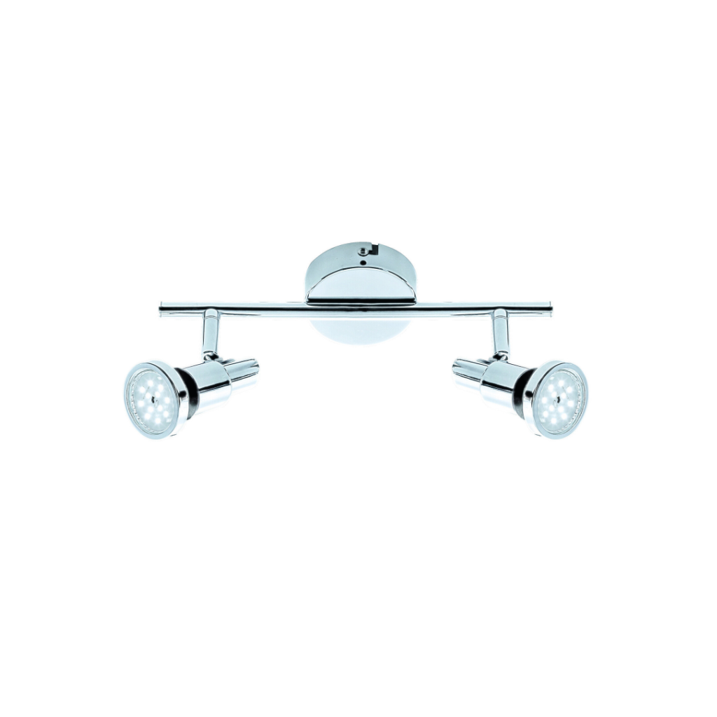 LED Spotleuchte 2-flammig Metall Moderner LED Deckenspot in chrom, gefertigt aus Metall Durch ihr schlichtes Design ist diese LED Deckenlampe vielseitig einsetzbar und eignet sich dank der Schutzart IP44 (spritzwassergeschützt) besonders als Badleuchte Dank der dreh- und schwenkbaren Spots können Sie das Licht individuell steuern und ganz nach Ihren Bedürfnissen anpassen Im Lieferumfang enthalten sind zwei LED/GU10 Leuchtmittel mit je 4 Watt.
