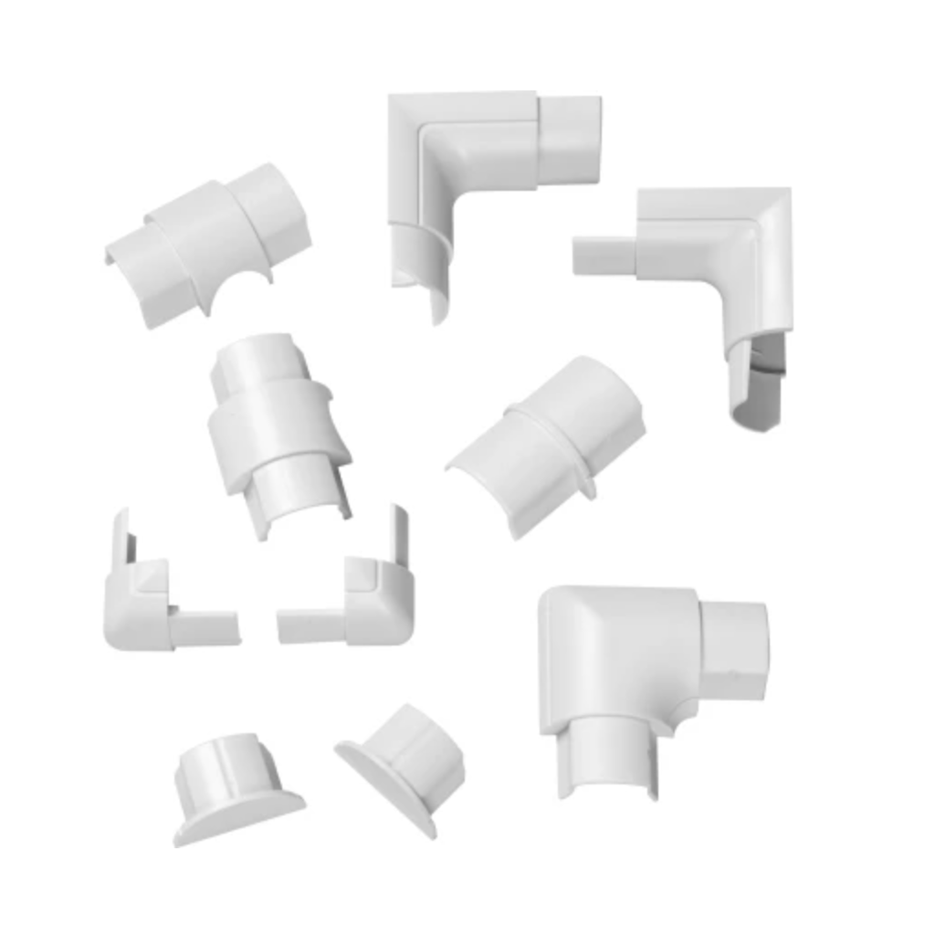 Mithilfe dieser Zubehörteile können Kabelkanäle problemlos miteinander verbunden werden - auch in Ecken und an Abzweigungen.