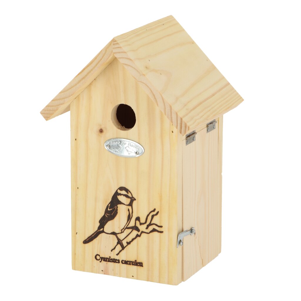 Die eingebrannte Silhouette und der lateinische Name weisen bereits darauf hin, dass dieser Nistkasten für die Blaumeise bestimmt ist.