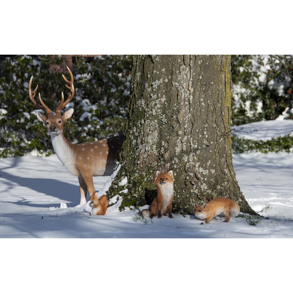 Entdecken Sie die faszinierende Welt der Waldtiere aus Polyresin mit dem stehenden Sikahirsch von Esschert Design.