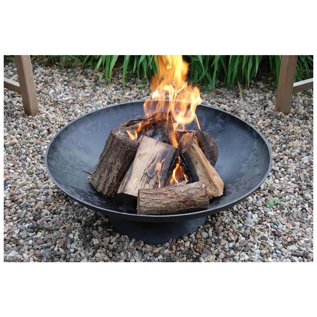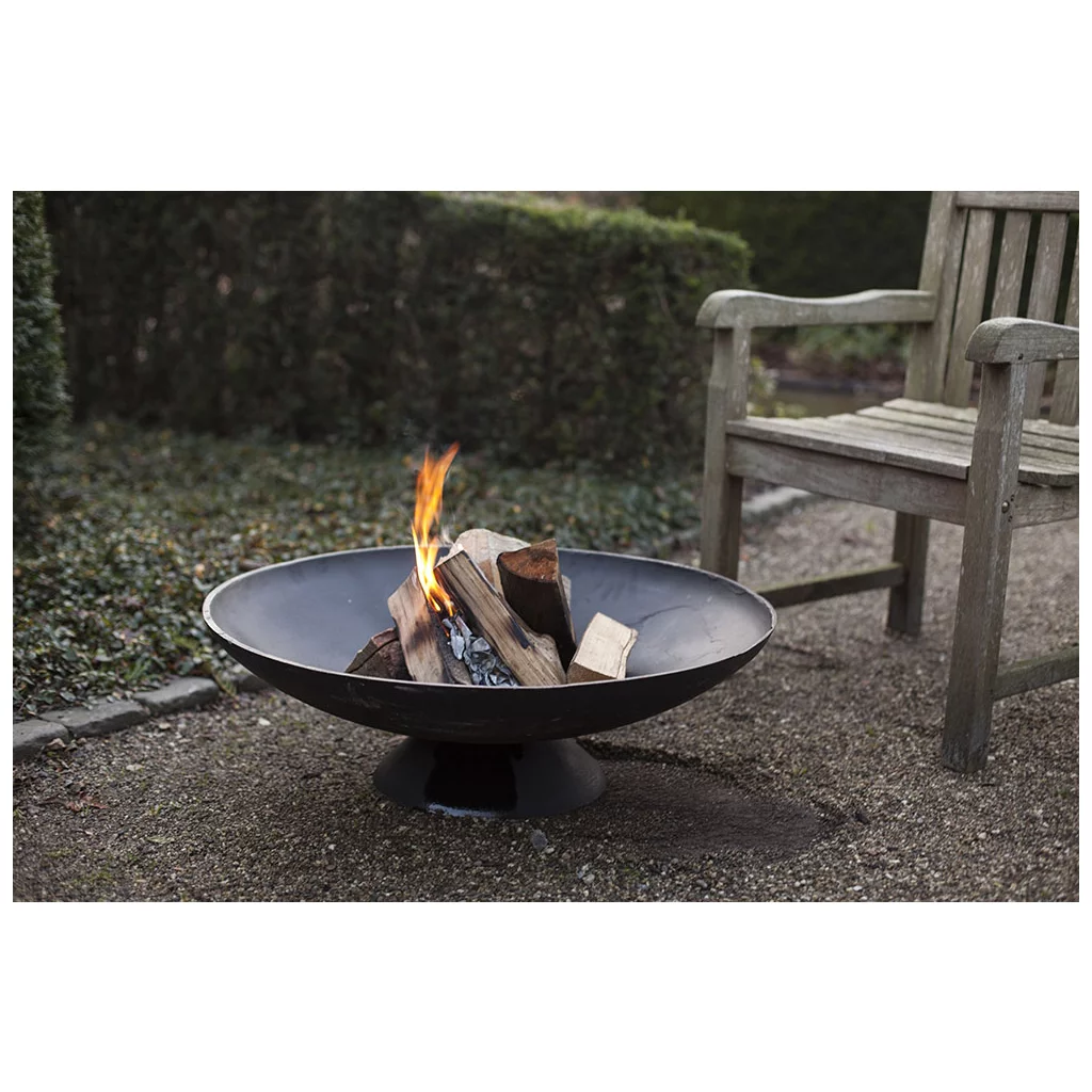 Diese schwere runde Feuerschale mit stabilem Untergestell bietet rundum Ambiente und Wärme.