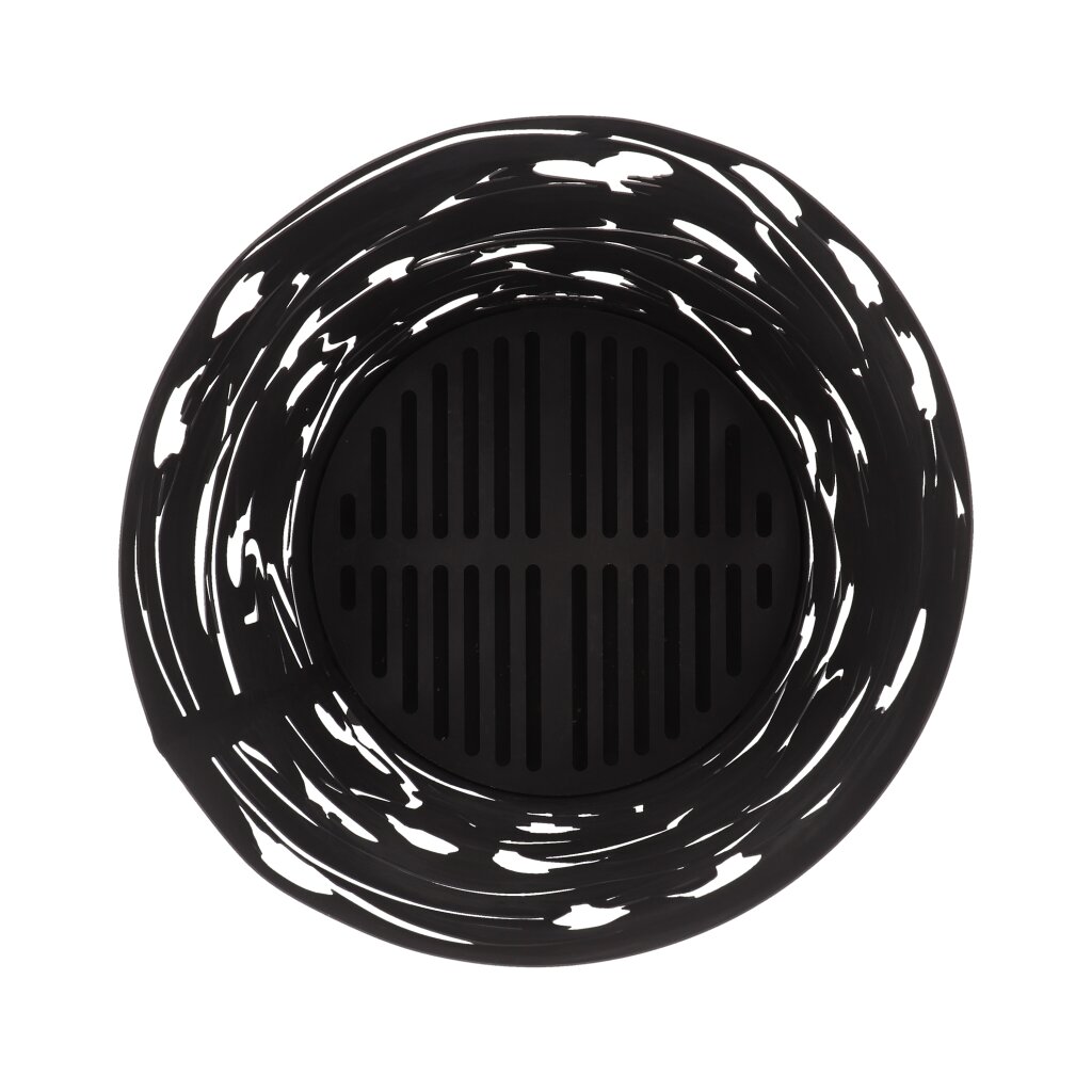 Die Feuertonne ist aus Stahl und hat eine Tür, damit die Asche leicht entfernt werden kann.