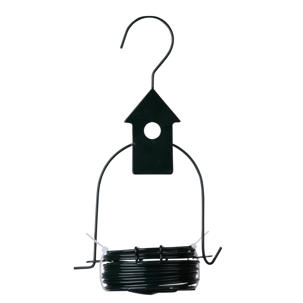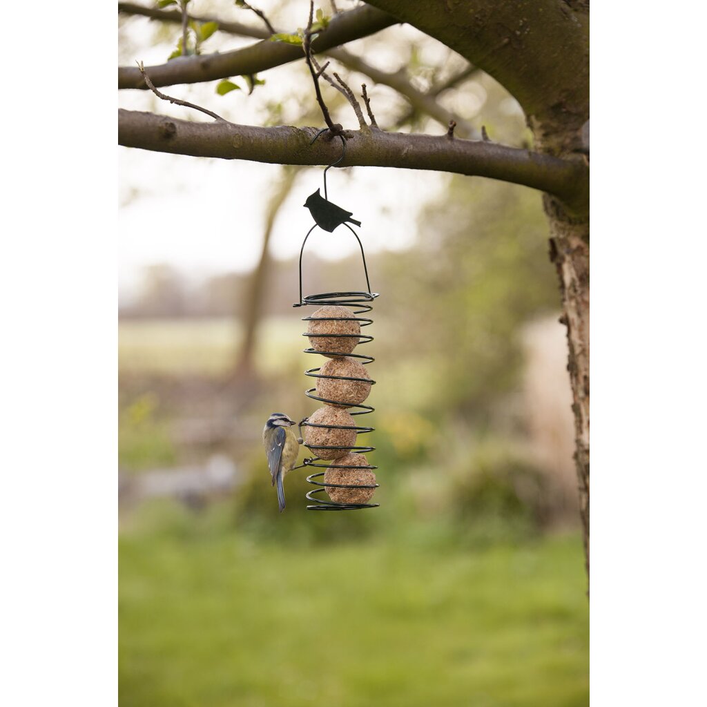 Diese gerade Futterfeder mit einem dekorativen Element an der Oberseite bietet Platz für bis zu 4 Meisenknödel.