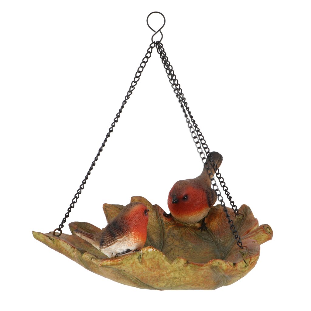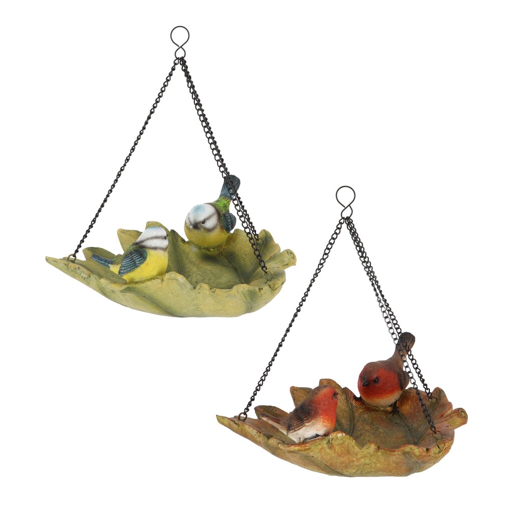 Das ESSCHERT DESIGN hängende Vogelbad in stilvoller Blattform bietet gefiederten Gästen eine erfrischende Tränke und eine sichere Badegelegenheit.
