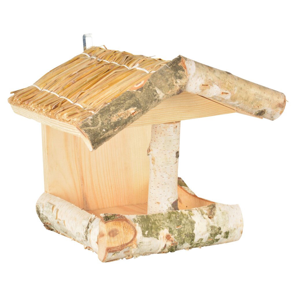Dieses traditionelle Birken- Futterhaus mit ländlicher Ausstrahlung bietet Vögeln einen idealen Futterplatz.
