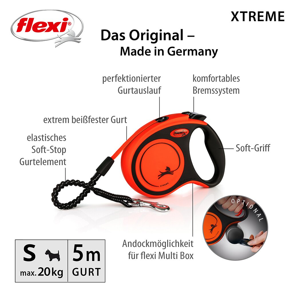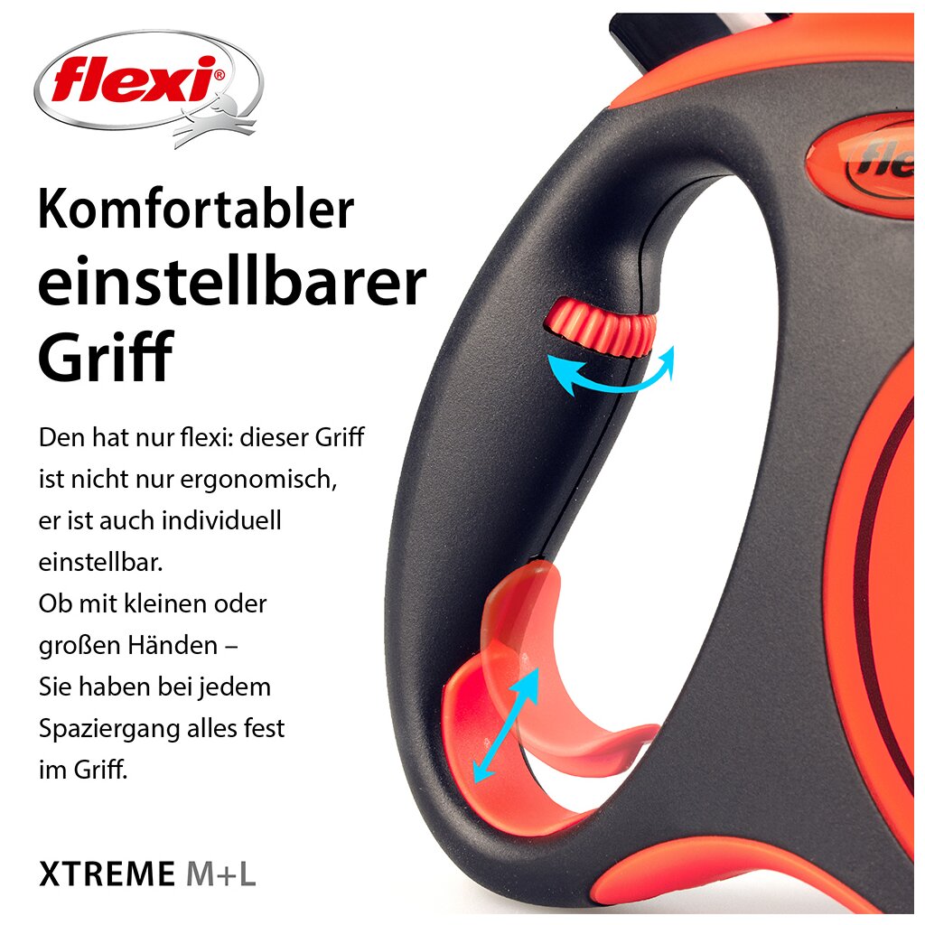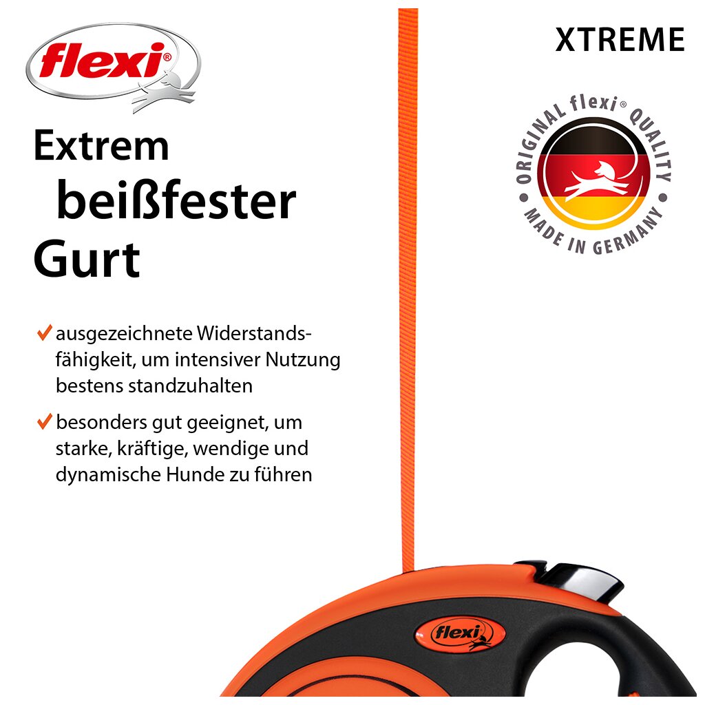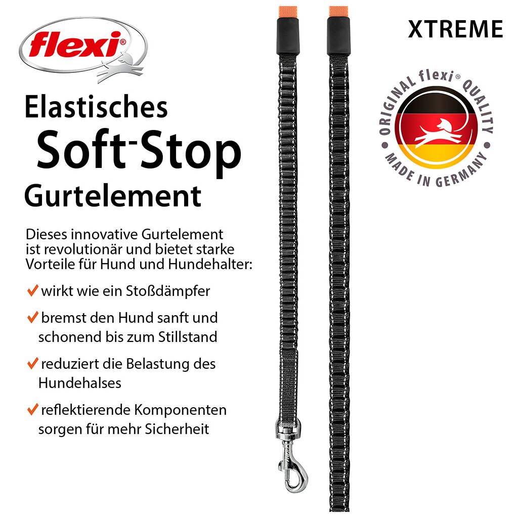 Die besonders robuste Gurt-Leine flexi "XTREME" bietet Flexibilität, Komfort und Sicherheit dank des elastischen Soft-Stop-Gurtelement und passt perfekt in jede Grundausstattung.