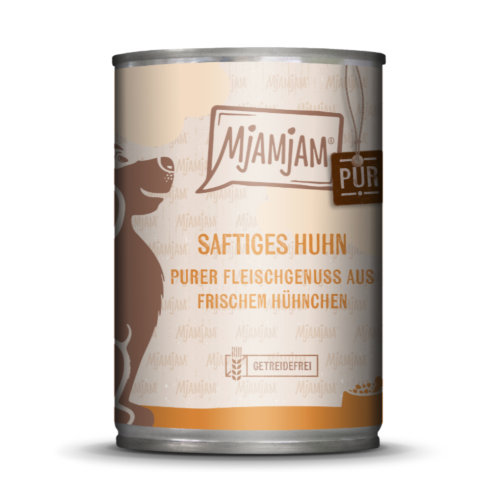 MjAMjAM Adult Saftiges Huhn pur ist wie ein ruhiger Anker im Futteralltag: vertraut im Geschmack, klar in der Rezeptur und angenehm saftig – für Hunde, die es pur und unkompliziert mögen.