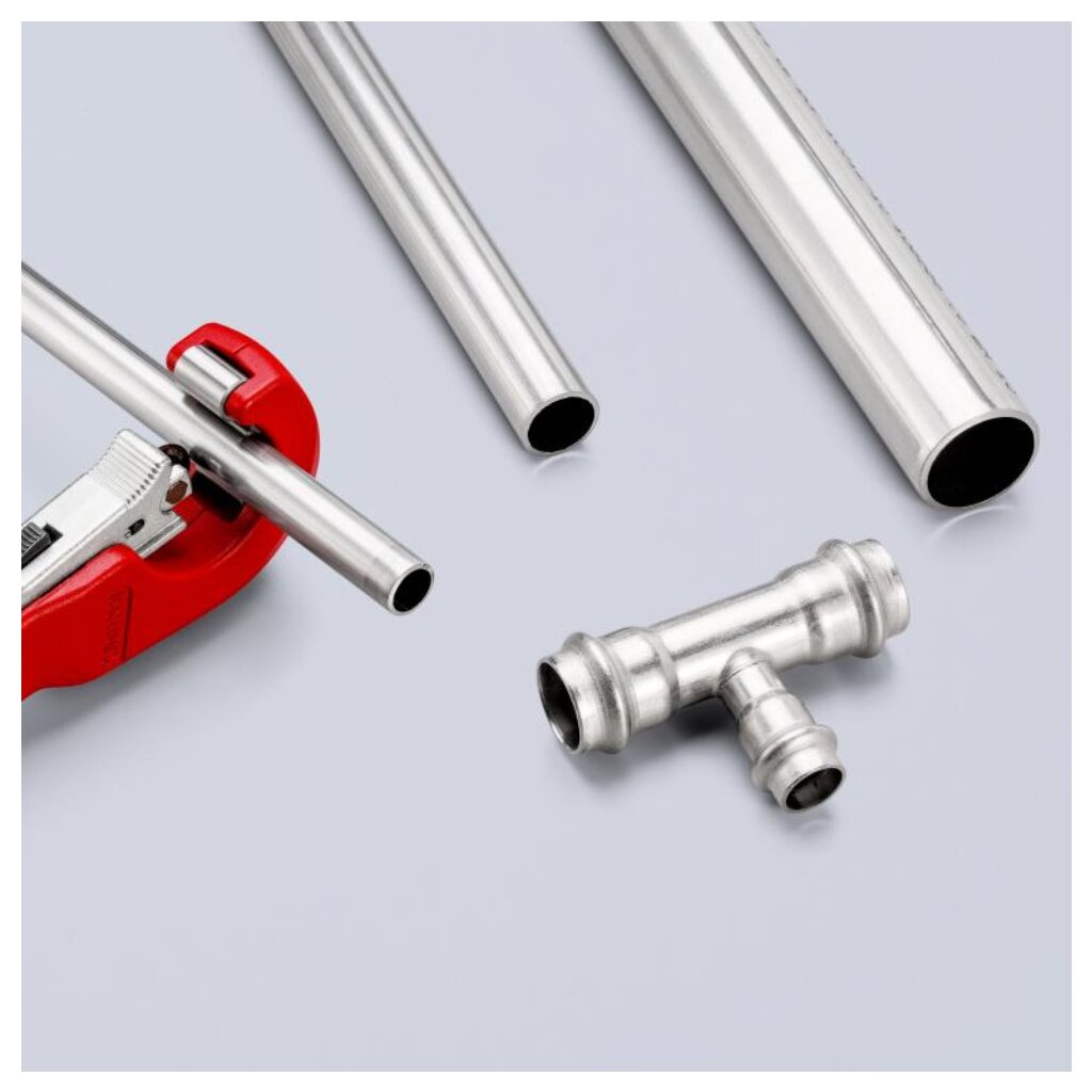 Rohre einfach durchtrennen: KNIPEX TubiX® Rohrabschneider – trennt Rohre mit einem Durchmesser von bis zu 35 mm und einer Wandstärke von 2 mm bei einfachster Handhabung
