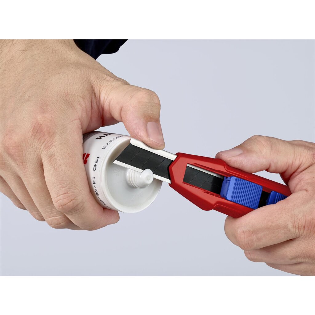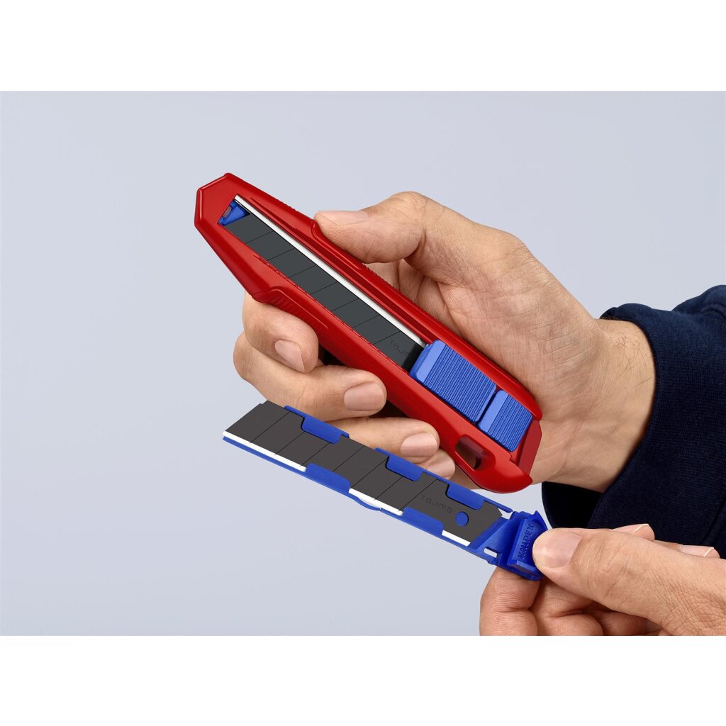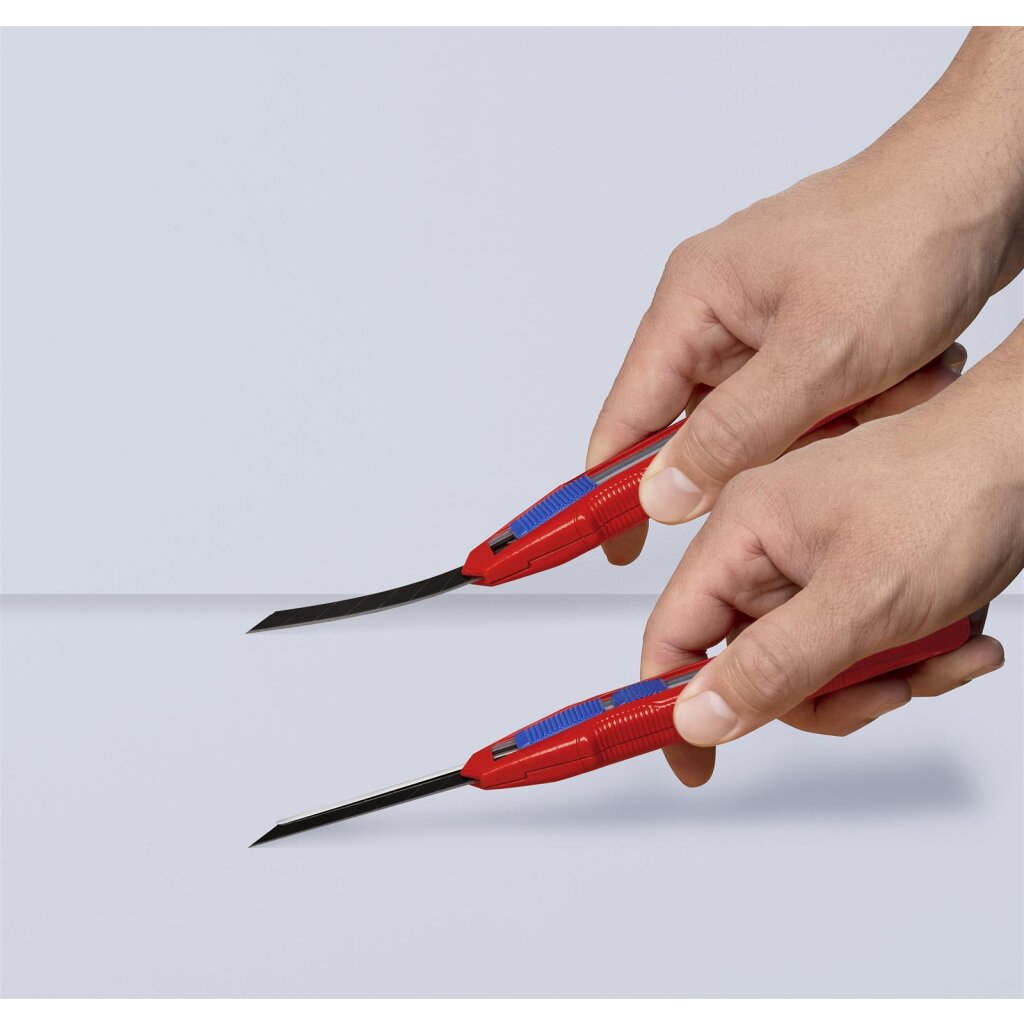 - Erstausrüstung mit hochwertigen Abbrechklingen, zwei Ersatzklingen in der Griffschublade, werkzeuglos wechselbar