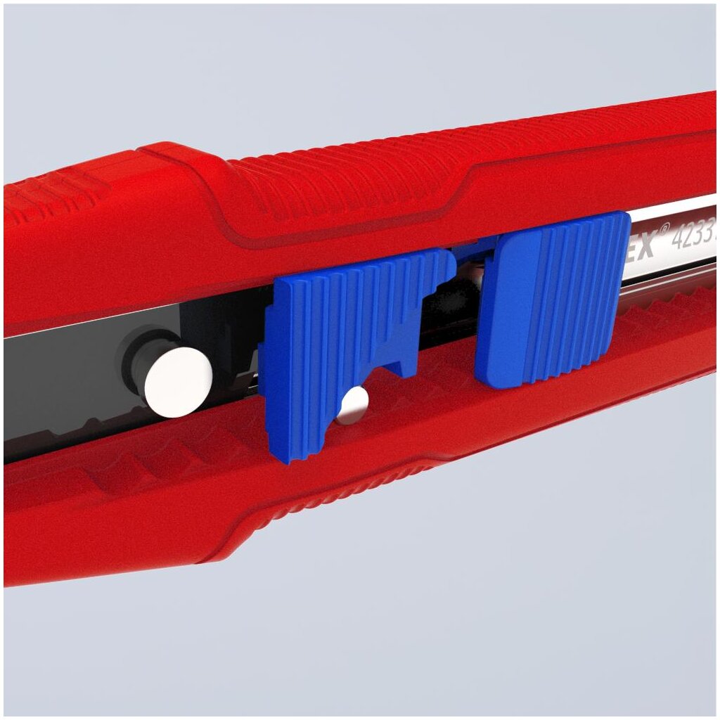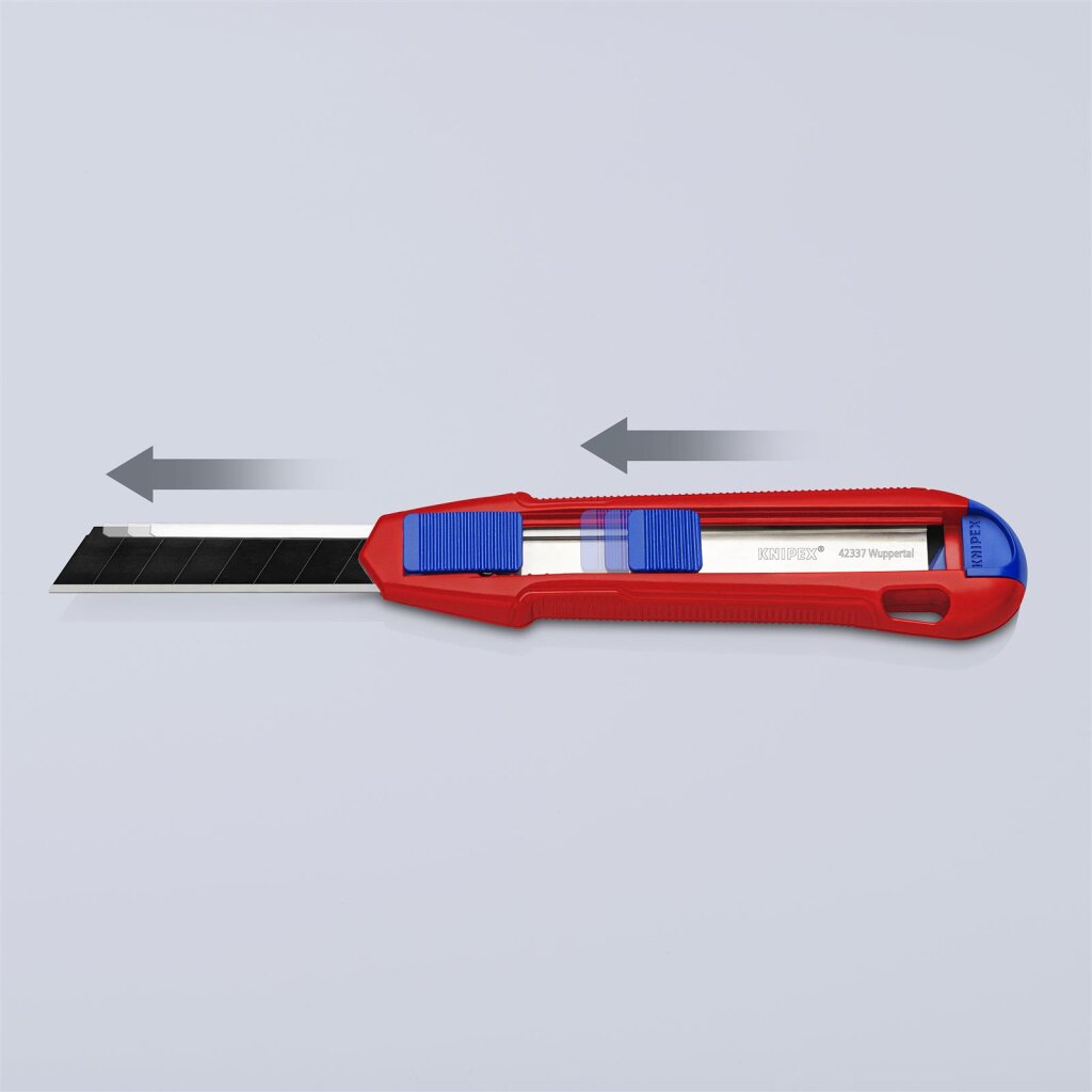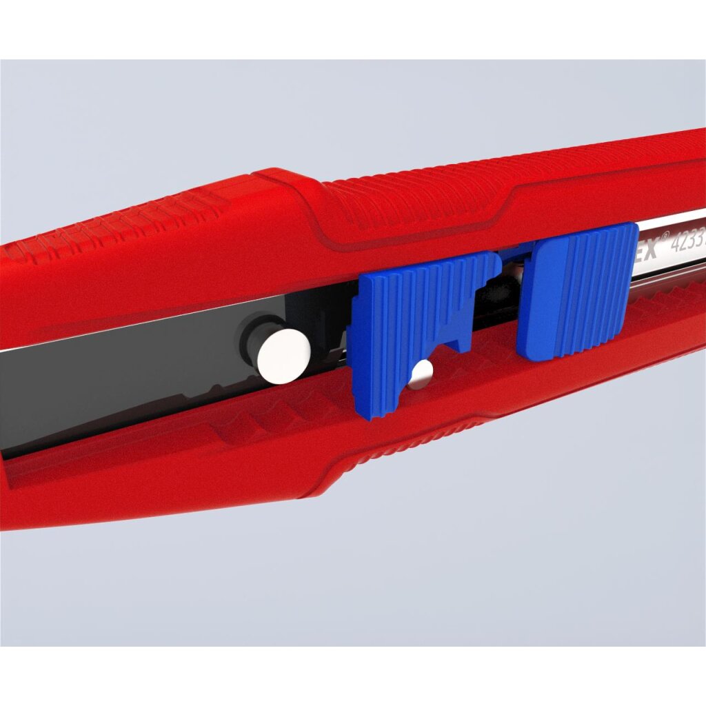 - Flache, ergonomische Schieber separat für Klinge und Stabilisierungsschiene, kein versehentliches Betätigen der Schieber