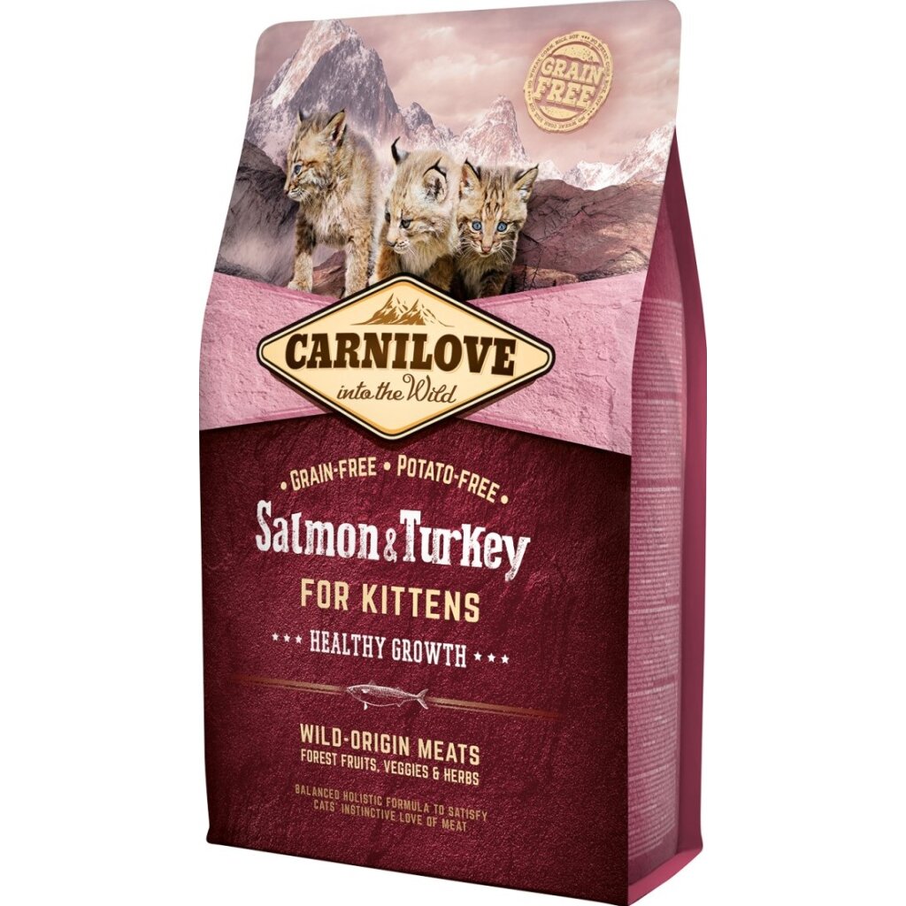 Carnilove Salmon & Turkey für Kätzchen wurde mit dem Gedanken an die natürliche Zusammensetzung von Katzenfutter zusammengestellt. Das Rezept basiert auf Lachs und Truthahn, beides Quellen für essentielle Aminosäuren, die in Kombination mit Waldfrüchten, Gemüse und Kräutern täglich essentielle Nährstoffe, Vitamine, Mineralstoffe und Antioxidantien für eine gesunde Entwicklung des Skeletts, der Muskulatur und der natürlichen Immunität liefern.
