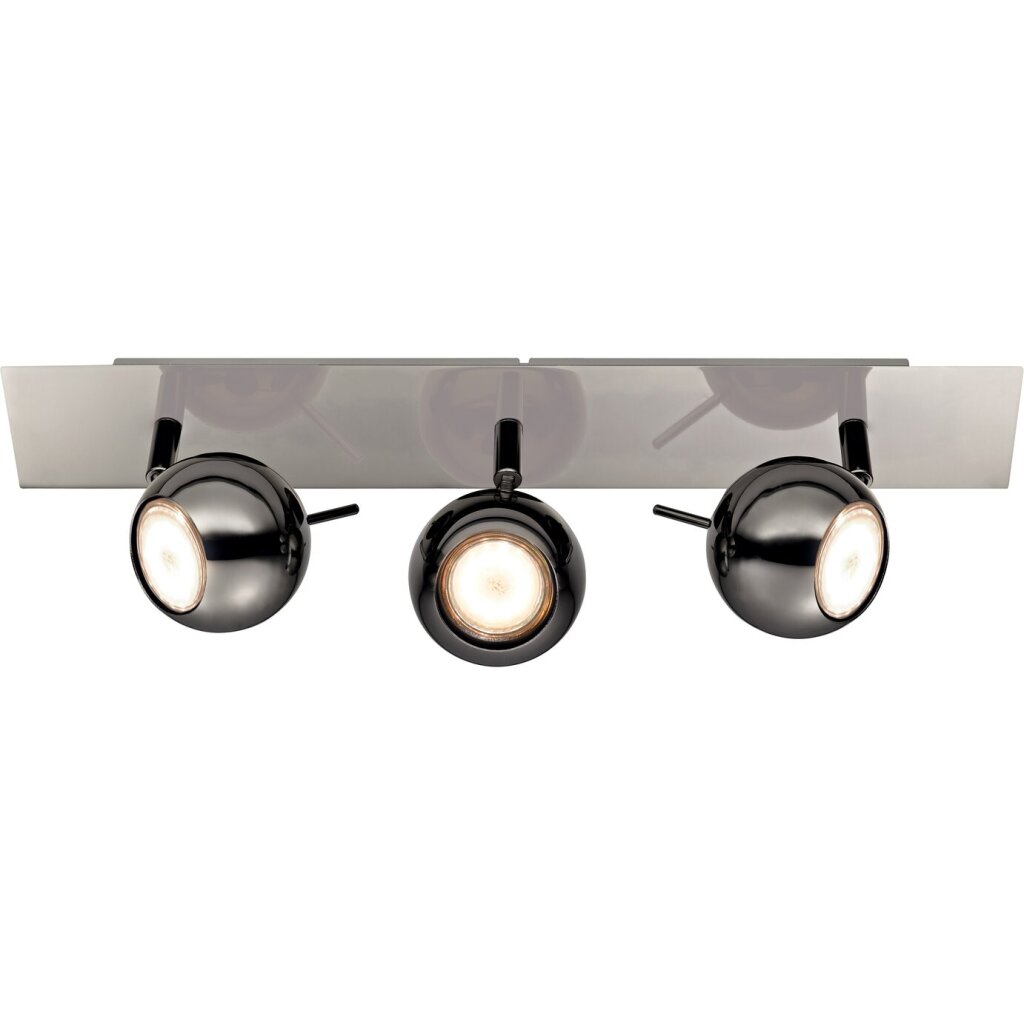 Der moderne 3er LED-Spot aus der Serie Grana hat eine schwarz-chromfarbene Oberfläche. Mit seinem attraktiven Design ist dieser Spot ein Highlight in Ihren vier Wänden. Die leicht montierbare Deckenlampe überzeugt durch ihr schlichtes Design und leuchtet Ihren Wohnraum ideal aus. Die Spotleiste, auf der die drei verstellbaren Strahler angebracht sind, hat eine Länge von ca. 56 cm.