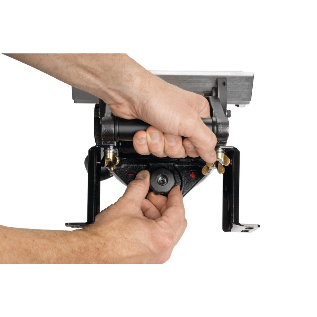 - Führungsplatte ausgestattet mit justierbaren Kugelköpfen für leichten Lauf des Werkstückes