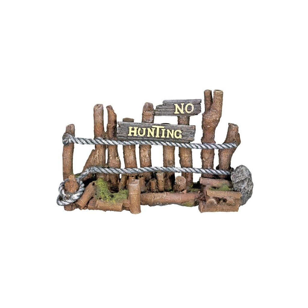 Der "Holzzaun" mit der Aufschrift "No Hunting" ist ein Highlight für jedes Süß- oder Meerwasseraquarium aus absolut ungiftigem Polyresin, das das biologische Gleichgewicht nicht beeinflusst.