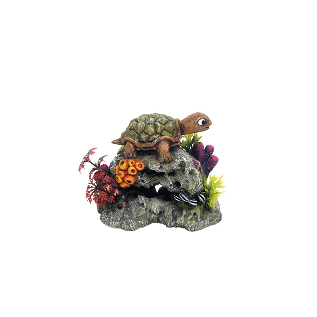 Die "Schildkröte auf Fels" mit Pflanzen ist ein leuchtendes Highlight für jedes Süß- oder Seewasseraquarium.