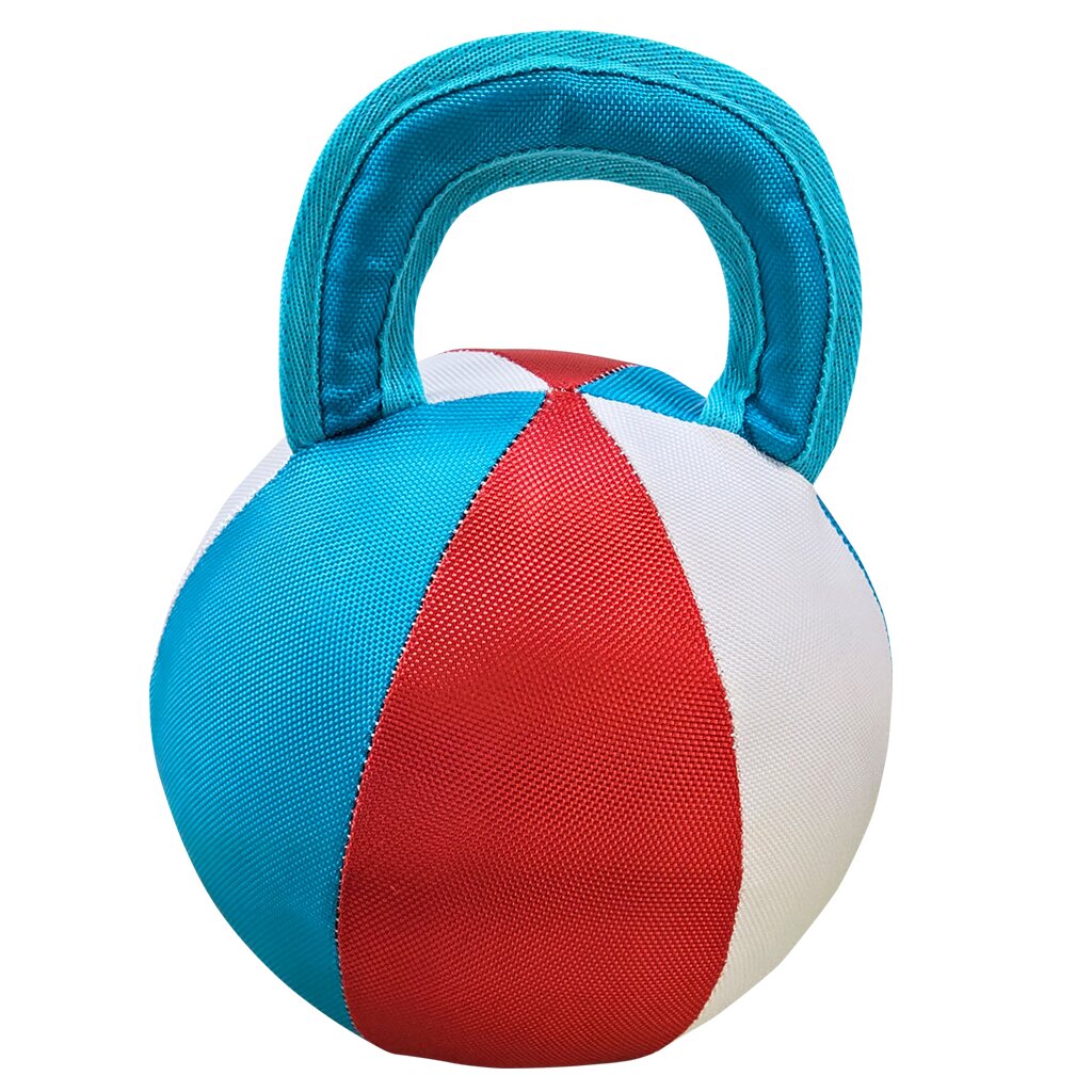 Der Ball mit Griff ist aus wasserfesten Stoff geht nicht unter, sondern schwimmt auf der Wasseroberfläche.