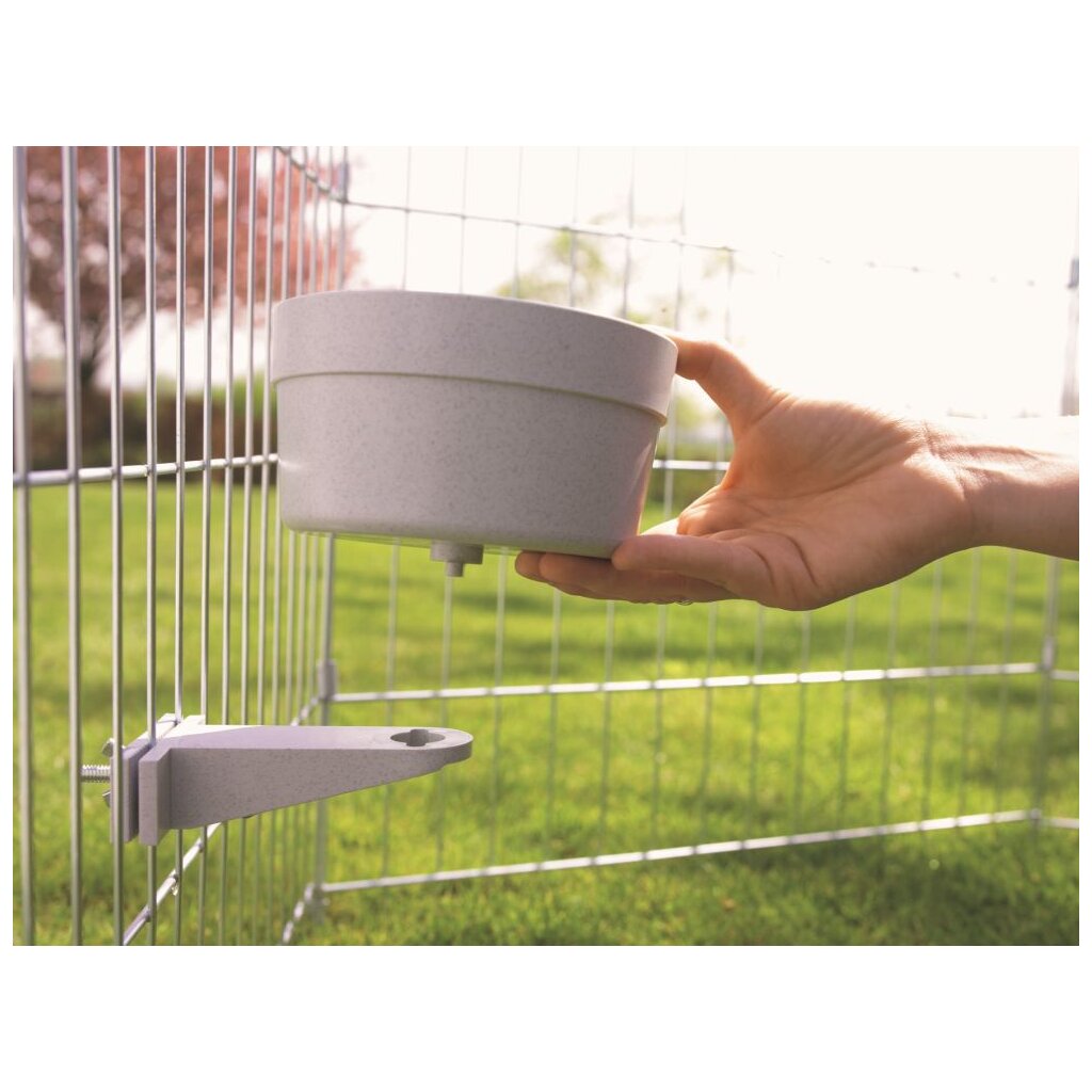 Ob im Zwinger oder im Welpenfreilauf - der Hundenapf "Crock" kann an allen gängigen Metallkäfigen befestigt werden.