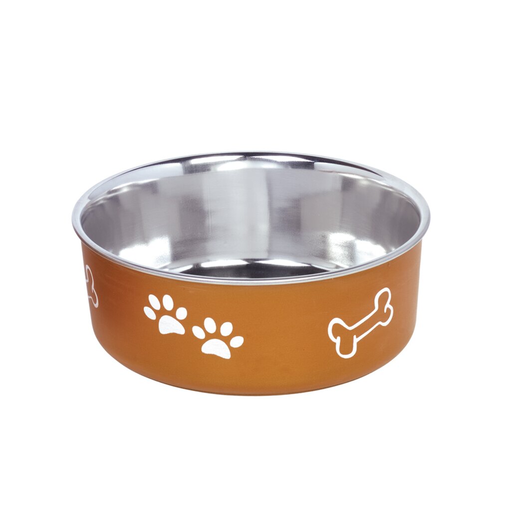Der Hundenapf "Fusion" aus Edelstahl und Kunststoff ist mit Pfoten- und Knochenmotiven versehen.