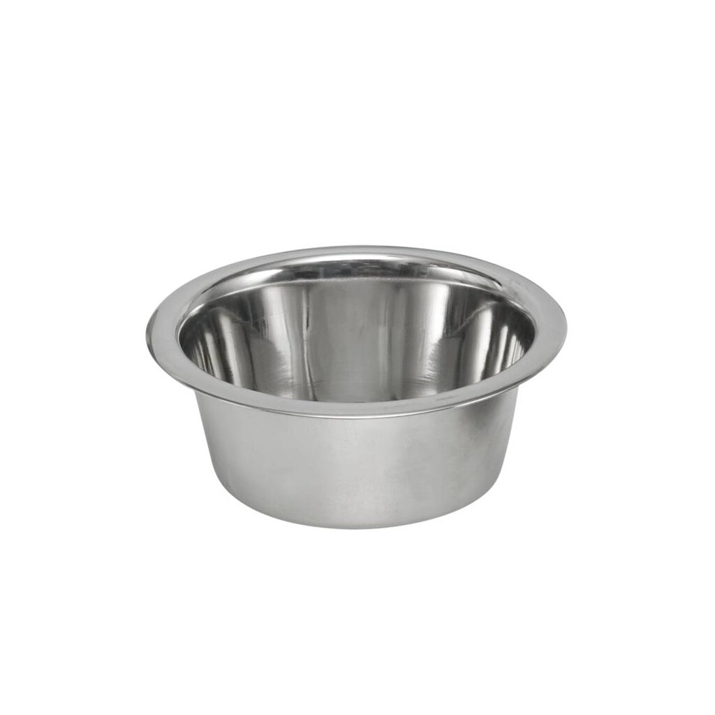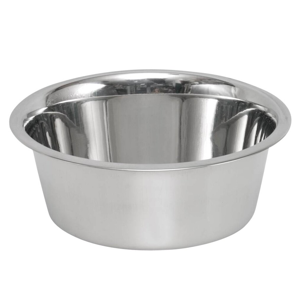 Dieser schlichte Napf ist aus Edelstahl hergestellt.