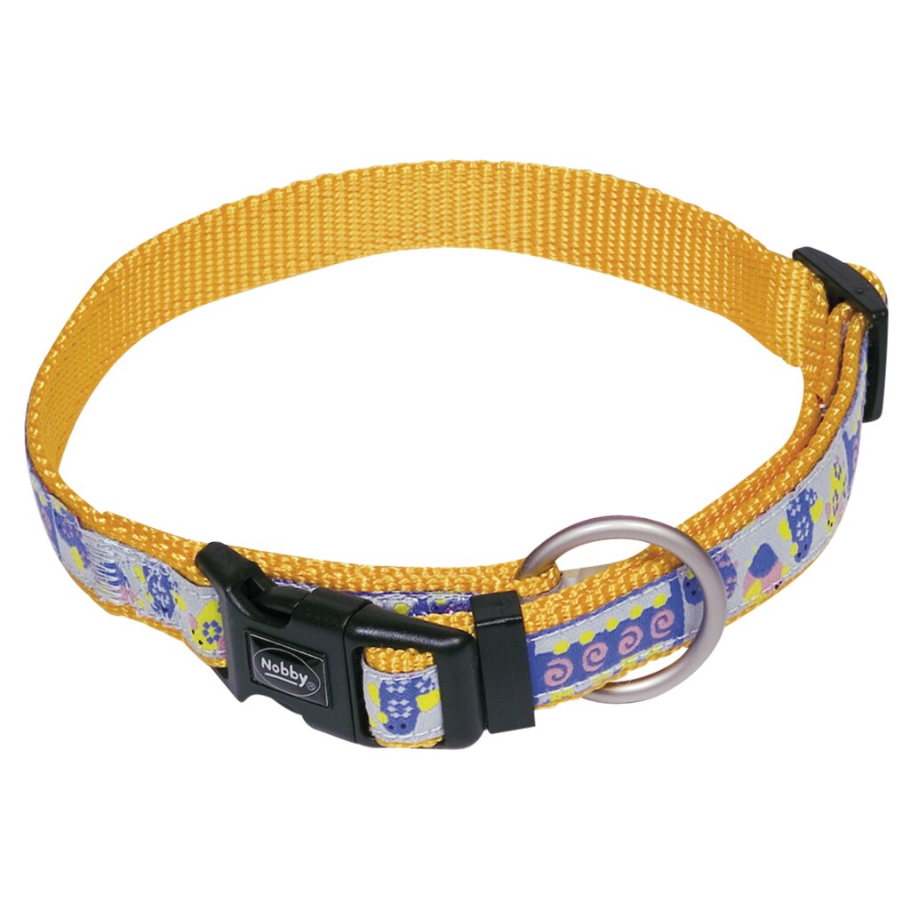 Dieses Halsband ist in fröhlichen, hellen Farben mit liebevollen Mustern gestaltet.