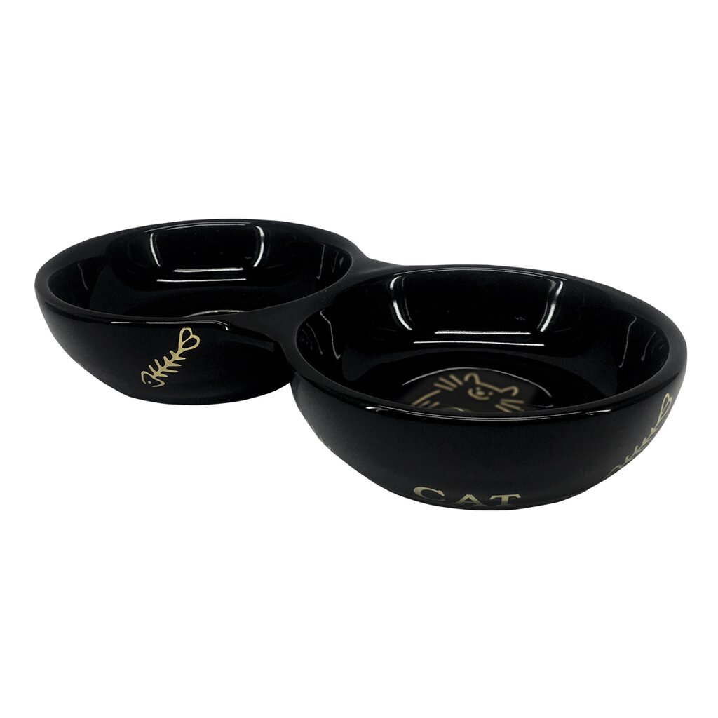 NOBBY Katzen Keramik Doppelnapf "Golden Fish Bone", schwarz, 22 x 4 cm