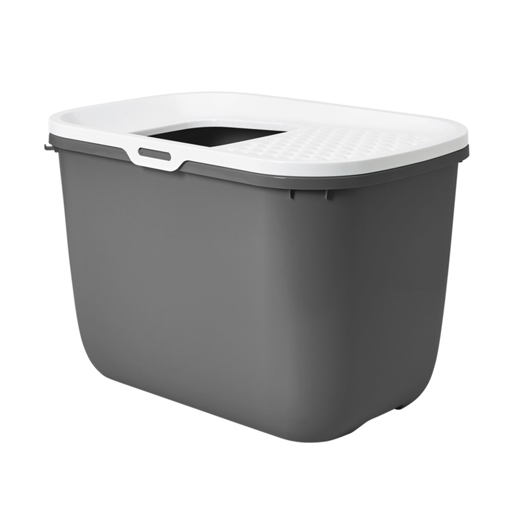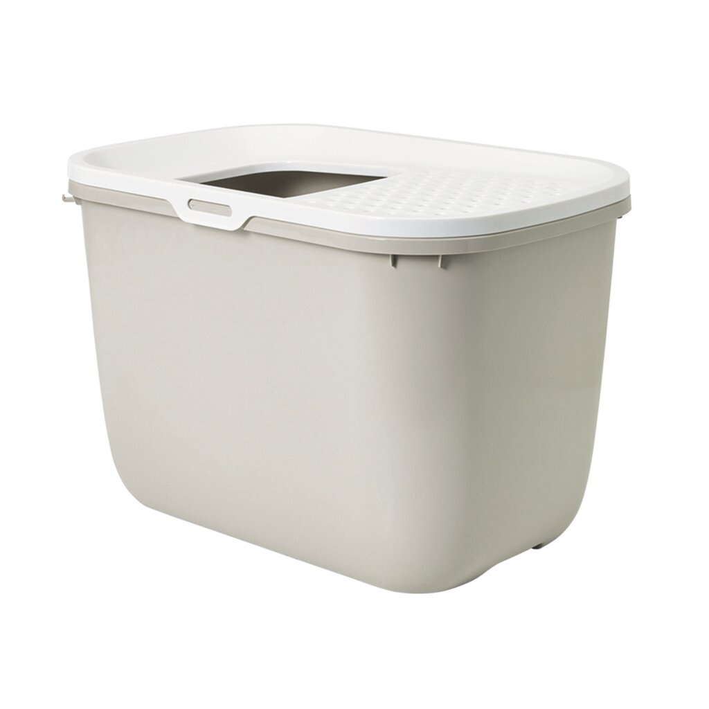 Die Besonderheit dieser Katzentoilette ist der Einstieg, der sich oben befindet, dadurch ist der Toiletteninhalt weder außerhalb verteilbar, noch für Kinder zu erreichen.
