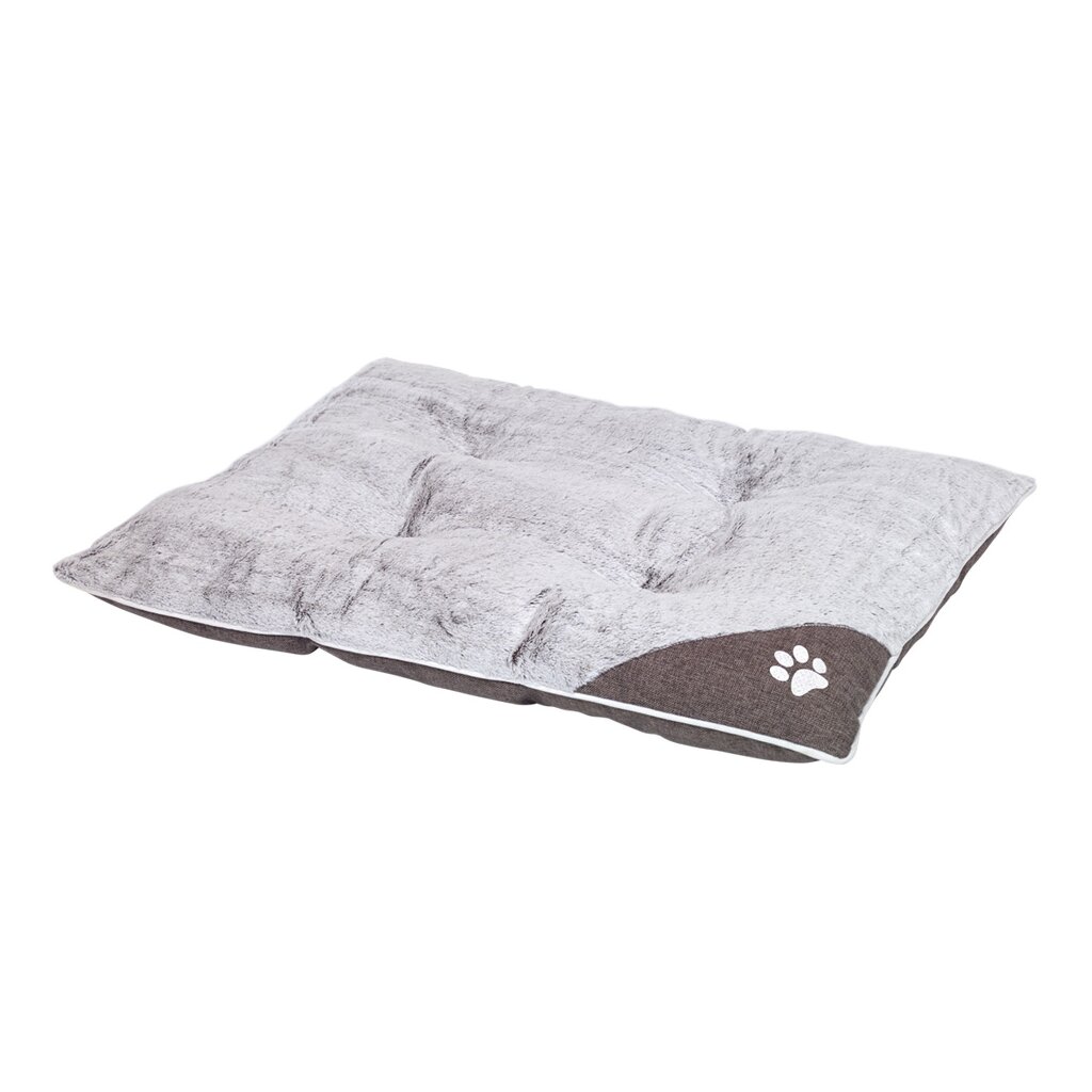 Das Wendekissen ist von einer Seite mit Softplüsch ausgestattet, auf der anderen Seite wurde Mikrofaser in Leinenoptik verarbeitet.