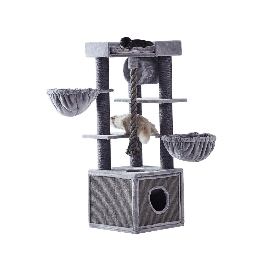 Sein schlichtes Design und die Farben in verschiedenen Grautönen machen den Kratzbaum nicht nur zu einem idealen Spiel- und Schlafplatz für Ihre Katzen, sondern auch zu einem dekorativen Einrichtungsgegenstand.