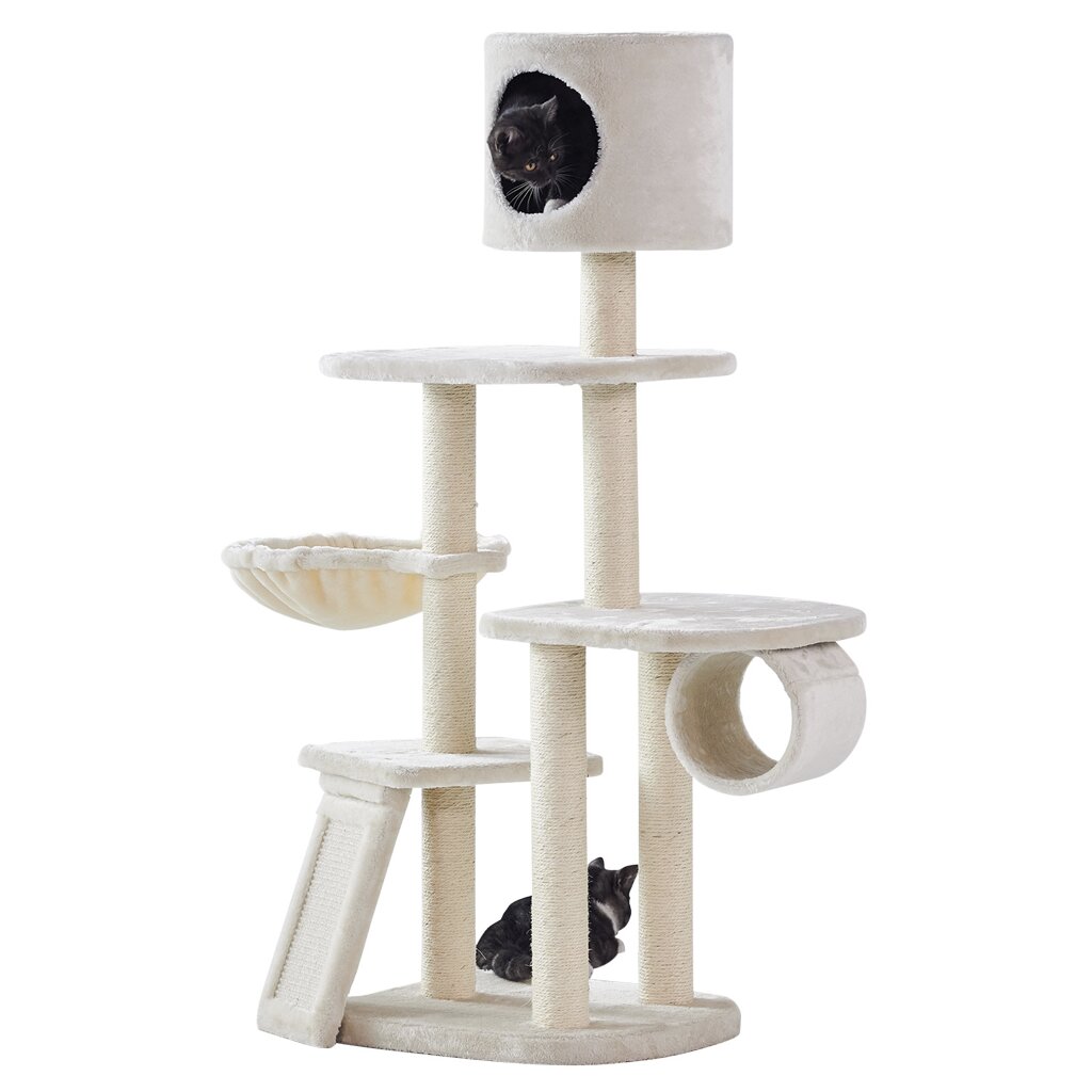 Verschiedene Liegeflächen, wie eine Mulde, Röhre und verschiedene Platten bieten einen gemütlichen Rückzugsort für Ihre Katze.