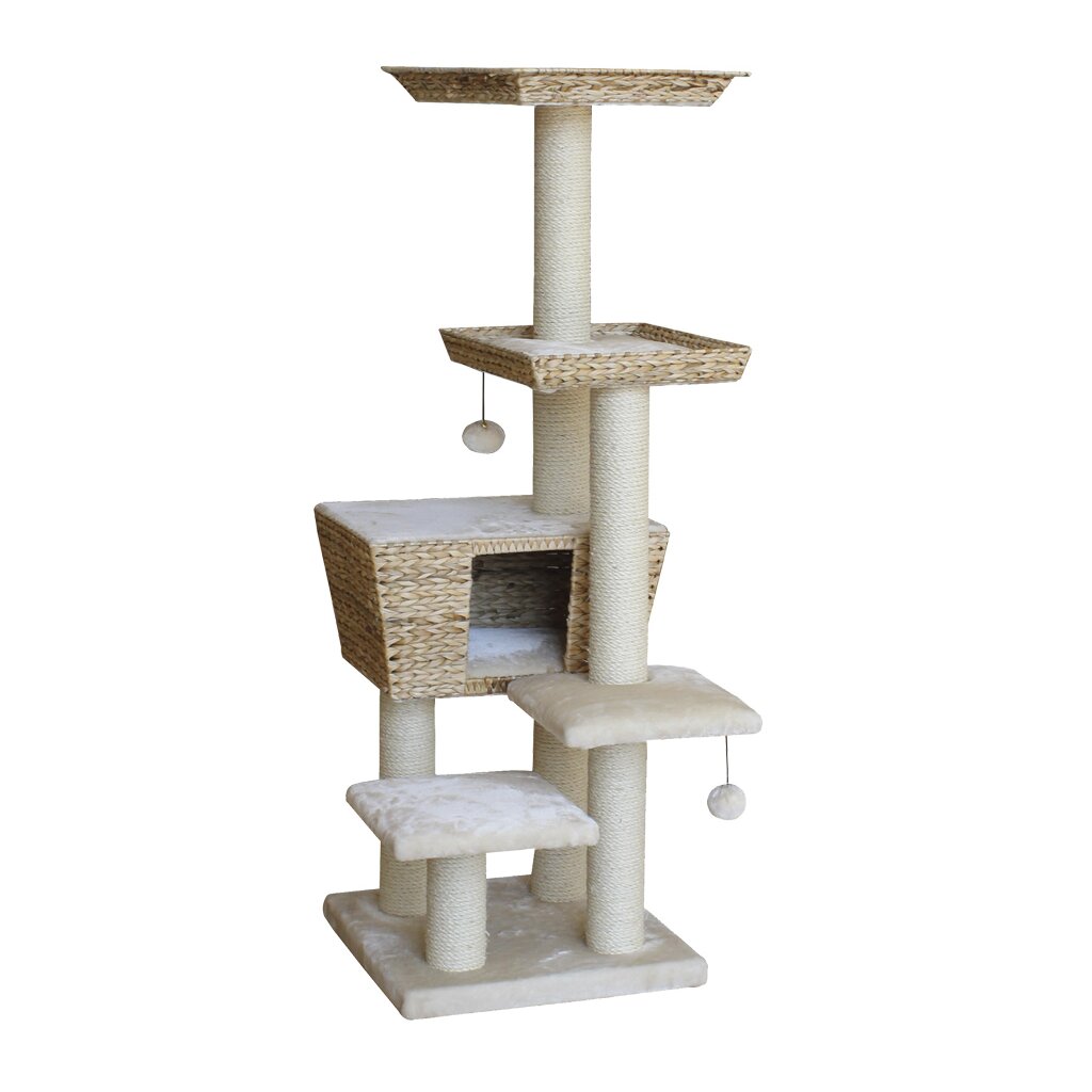 Kratzbäume dienen zur selbstständigen Beschäftigung Ihrer Katze und bieten oft auch einen Rückzugsort. Außerdem schützen Sie Ihre Einrichtung, da Sie Ihrer Katze eine gute Alternative zur Pflege ihrer Krallen bieten. "Motega" steht auf einer Grundfläche von 48 x 48 cm und ist 141 cm hoch. Das verarbeitete Material sind Bananenblätter und die Sisalstämme haben einen Durchmesser von 9 cm. Er überzeugt außerdem mit verschiedenen Platten sowohl mit als auch ohne Rand sowie einer Höhle.