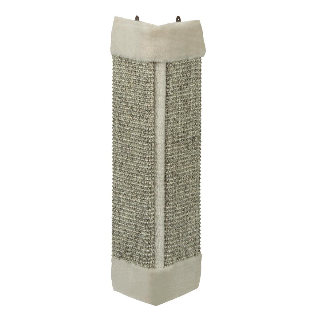 Diese Kratzecke bietet große Sisalflächen, umrahmt von weichem Plüsch.