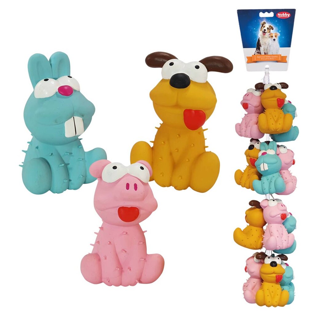Schon beim Hinsehen vermitteln das lustige Nobby Latex. "Tiere" Spielzeug Spaß am gemeinsamen Spiel. Ihr buntes Design regt die Fantasie an und die Figuren überraschen mit Quietschgeräuschen, wenn man sie drückt. Dies wird besonders von neugierigen, aktiven Hunden begeistert angenommen.