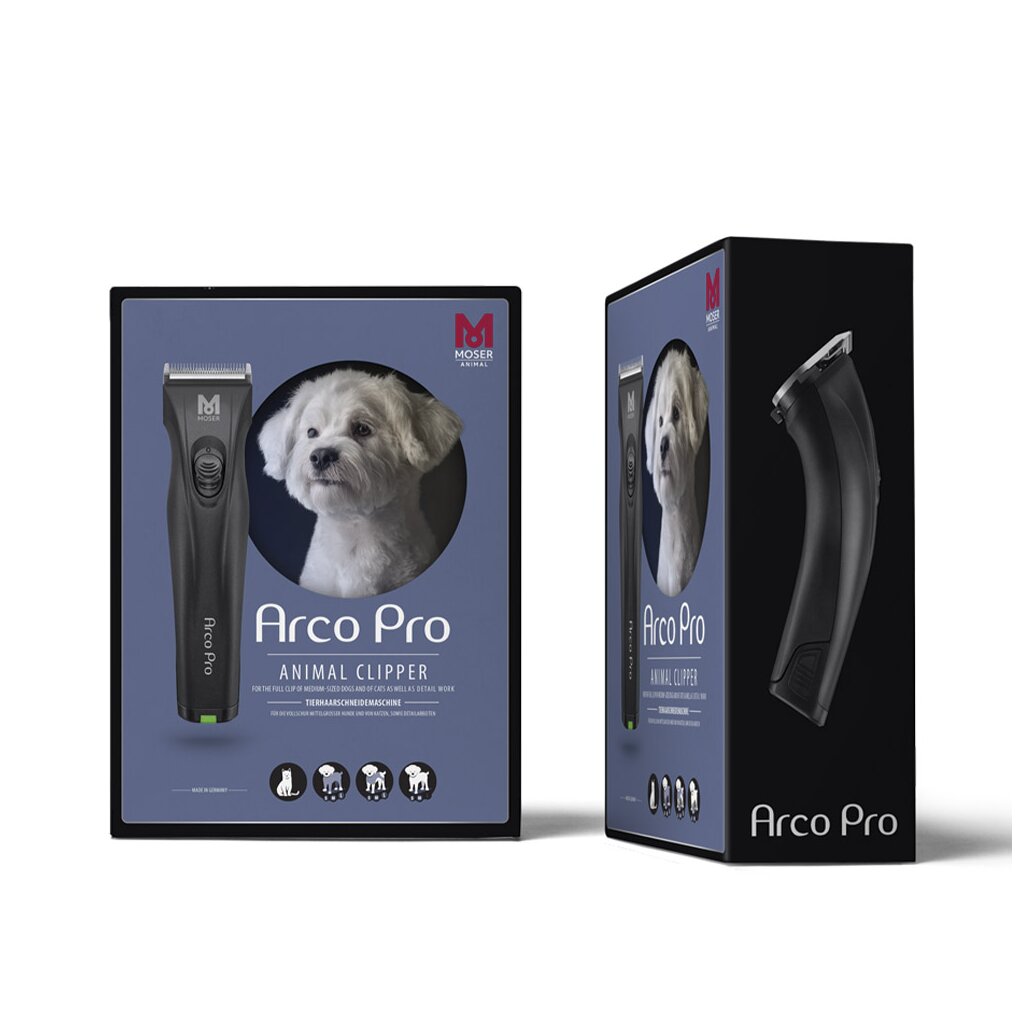 Die Moser Arco Pro Schermaschine besitzt zwei Power- Akkus für pausenloses Scheren.
