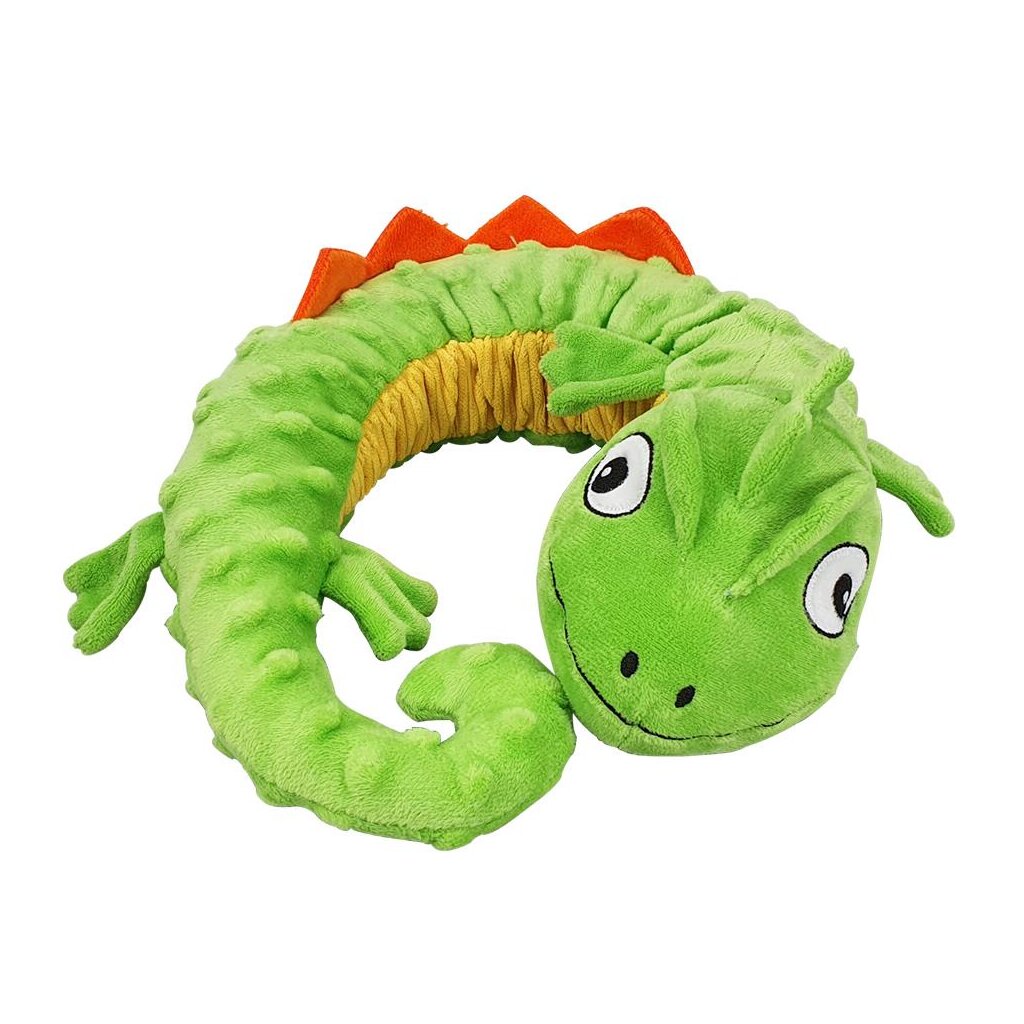Dieses grüne Chamäleon ist mit einem Squeaker und einem innenliegenden Seil aus Baumwolle ausgestattet.