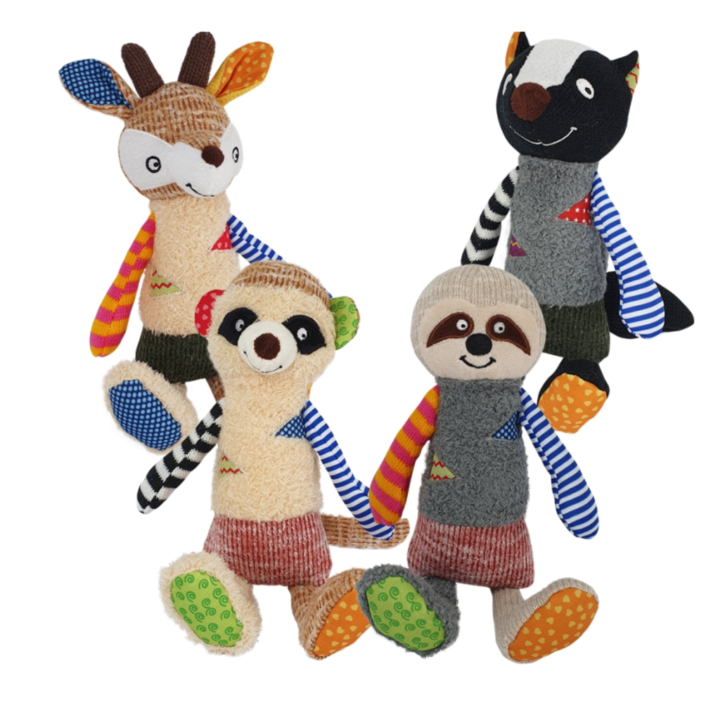 Erhältlich sind vier verschiedene Wildtiere, die alle aus hochwertigen Stoffen und Plüsch gefertigt sind.