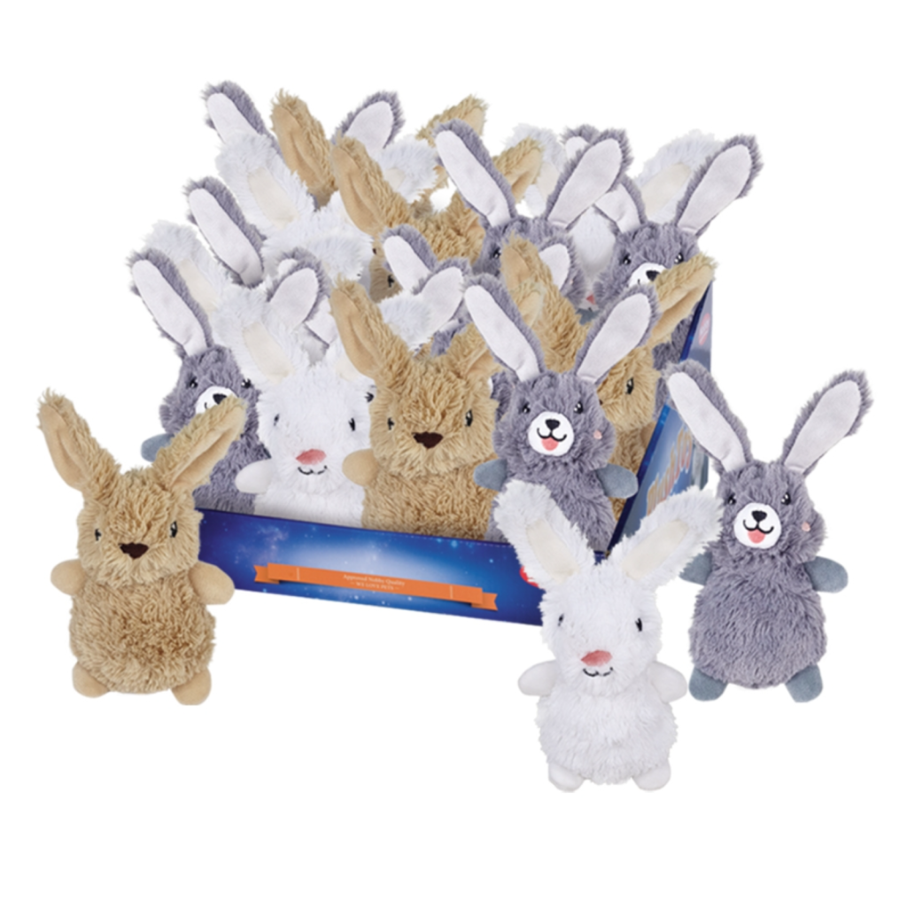 Jeder Hase verfügt über einen Squeaker und Knisterohren, die für zusätzlichen Spaß und Aufregung sorgen.