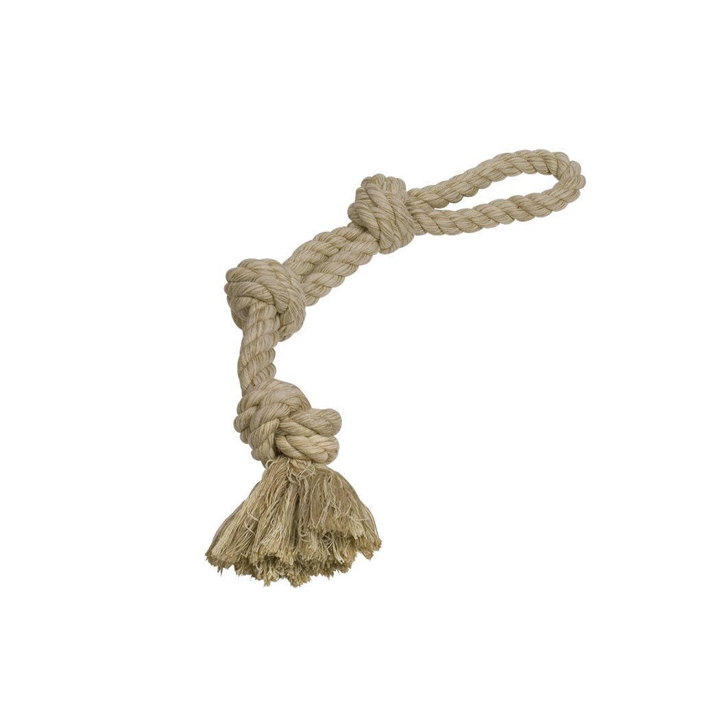 Dieses Spielseil aus der Serie "Rope Toy" besteht aus einem dreifach geknotetem Seil aus Sisal-Baumwoll-Mix und trägt zur Zahnpflege bei.