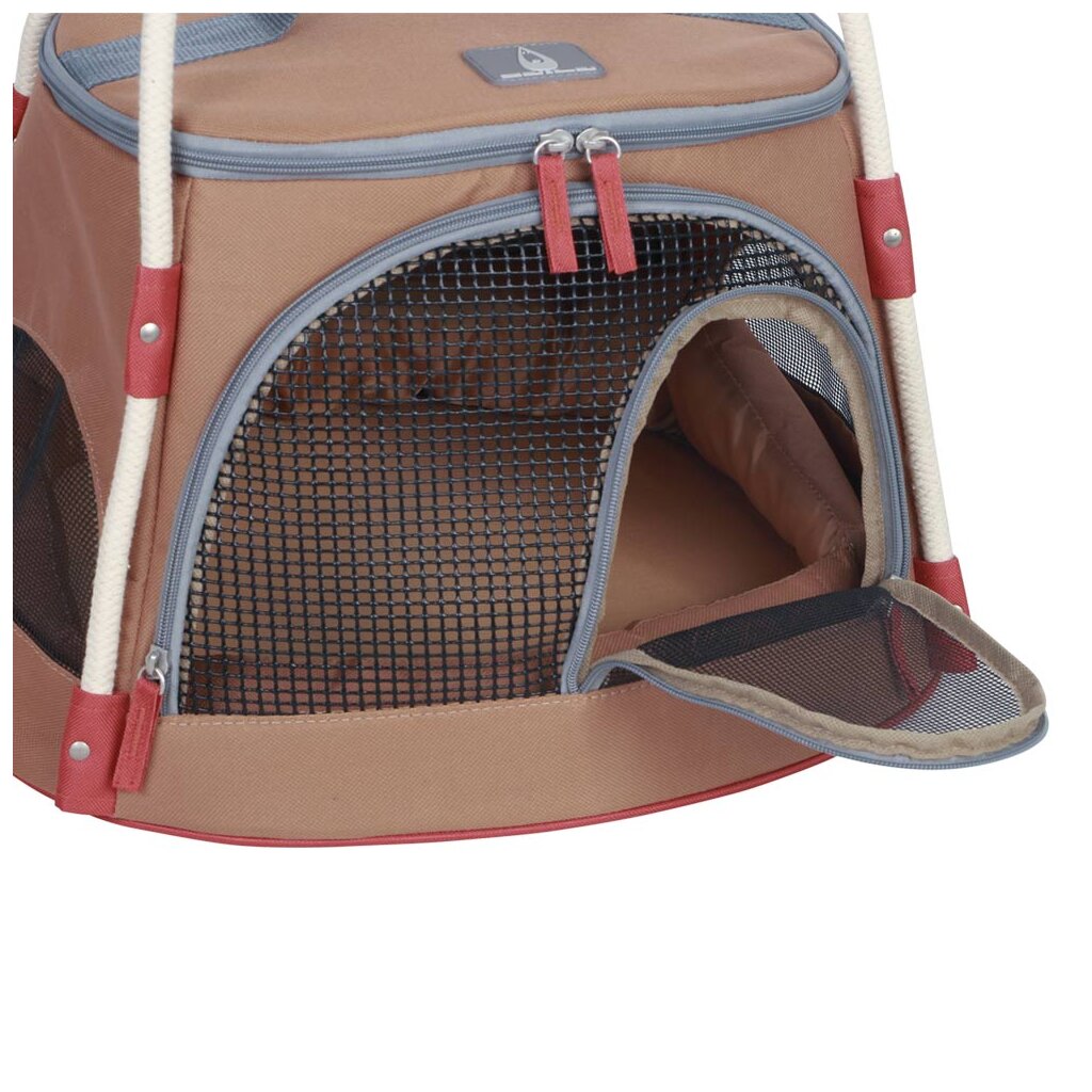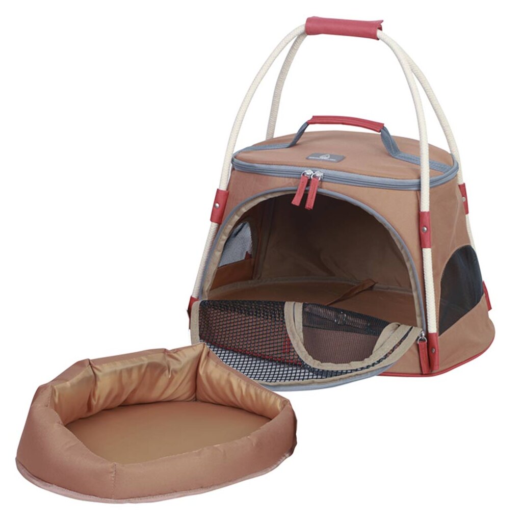 Ob auf Reisen oder auch auf dem Weg zum Tierarzt - gestalten Sie den Transport Ihres Hundes oder Ihrer Katze so stressfrei wie möglich. Die Tasche "Enoshima Cat" wird aus strapazierfähiger Mikrofaser hergestellt und ist damit leicht zu reinigen. Diese Tasche eignet sich perfekt für den Transport kleinerer Hunde und Katzen und sie ist als Transporttasche aber auch als Katzen- bzw. Hundehaus und als Reisebett(herausnehmbar) nutzbar. "Enoshima Cat" besitzt eine gute Luftzirkulation durch Netzeinsätze. Sie ist komplett von vorne bis oben zu öffnen und besitzt zusätzlich eine kleine Hausöffnung vorne. Die Tasche ist ausgestattet mit ,einem Karabinerhaken zum Anleinen und einem stabilen Tragegriff. Die Maße sind 46 x 40 x 29cm. Erhältlich in hellbraun.