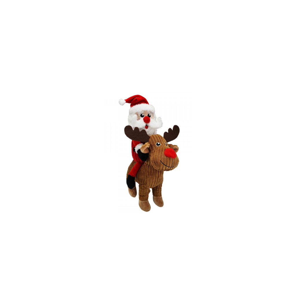Dieses weihnachtliche Plüsch-Weihnachtsmann auf Elch überrascht mit einem Squeaker.