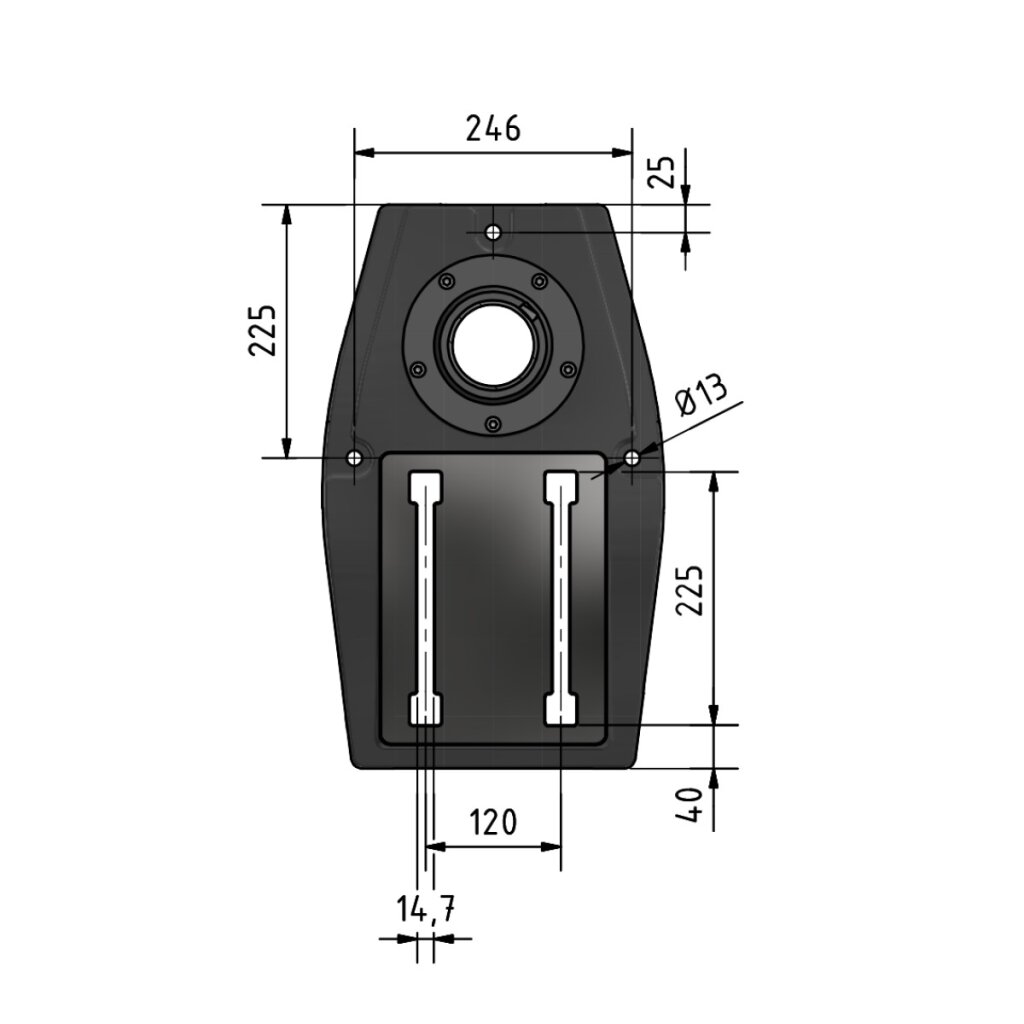 - Maschinenfuß T-Nuten Größe: 14 mm