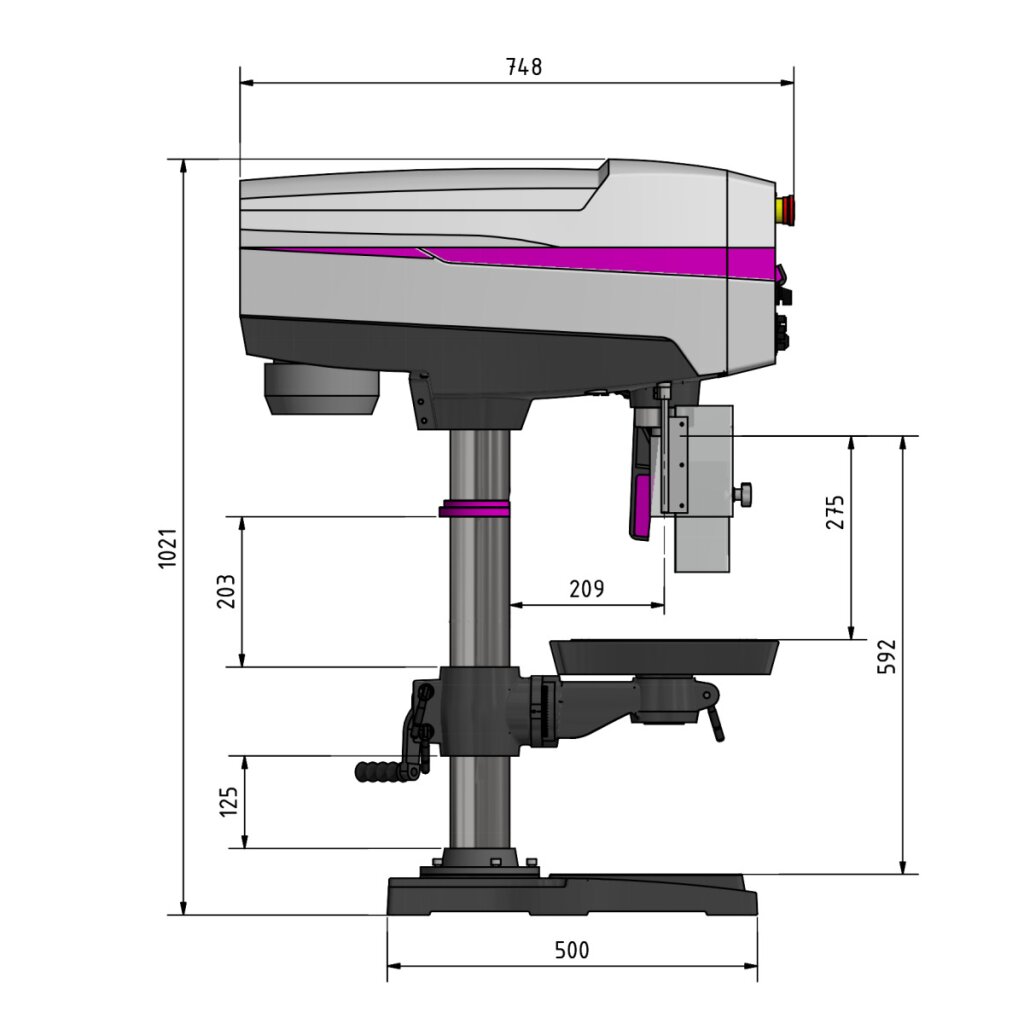 - Abstand Spindel - Maschinenfuß max.: 592 mm