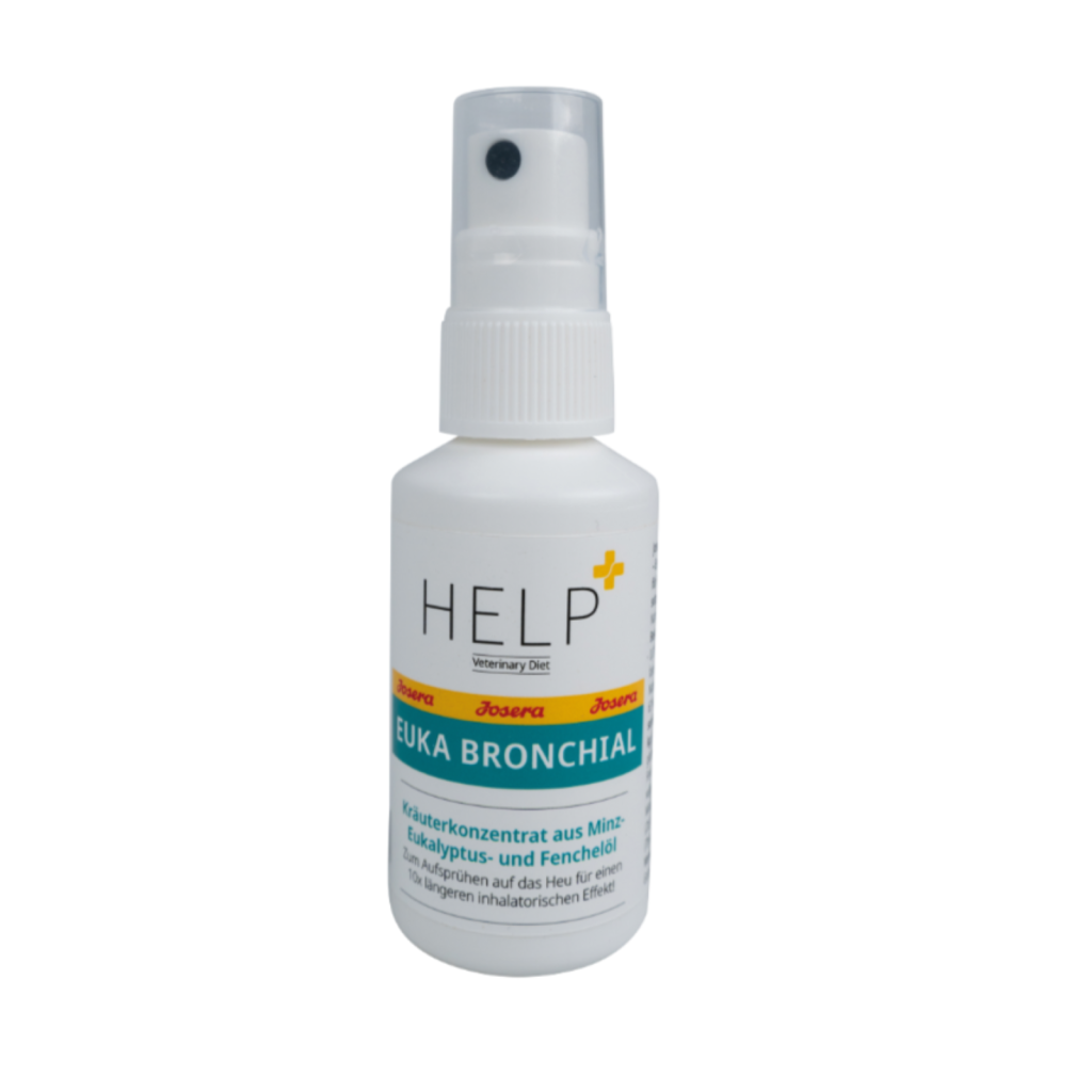 ✕JOSERA Help EukaBronchial ist ein flüssiges Kräuterkonzentrat für Pferde und Ponys, das direkt auf das Heu aufgesprüht oder über das Kraftfutter gegeben werden kann.