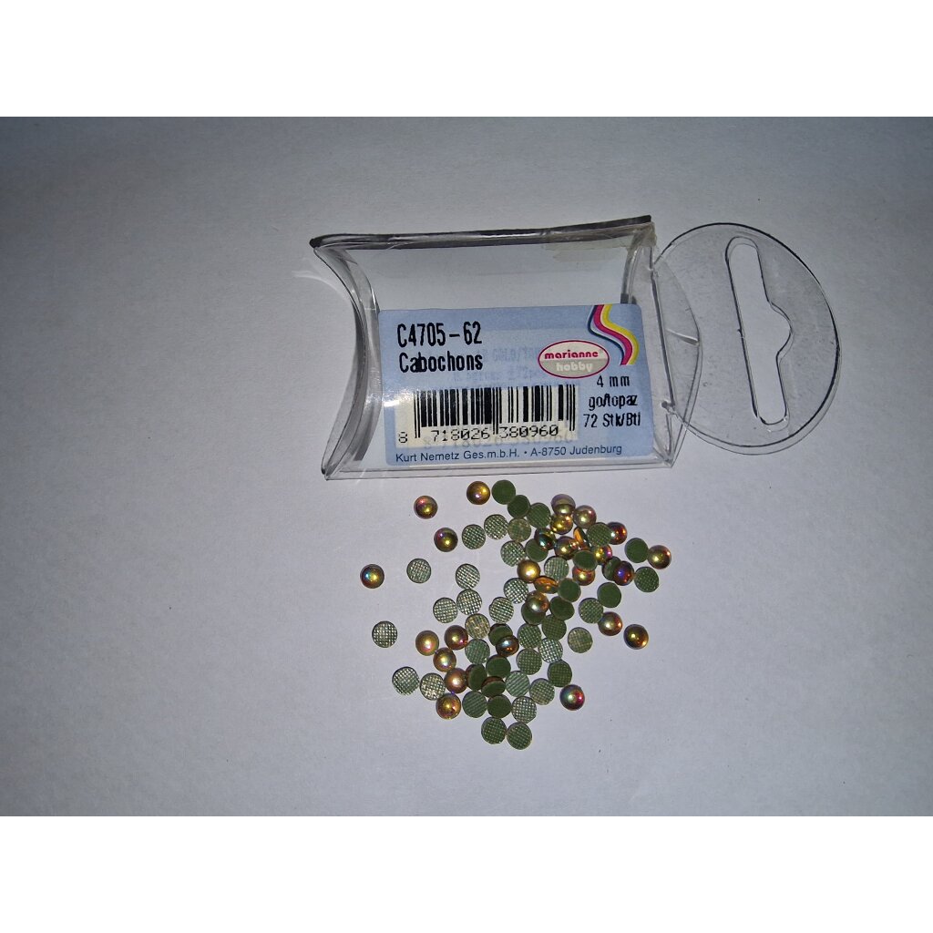 Produktbeschreibung: Strass Cabochon Goldtopas 4mm - 3 Packungen à 72 Stück