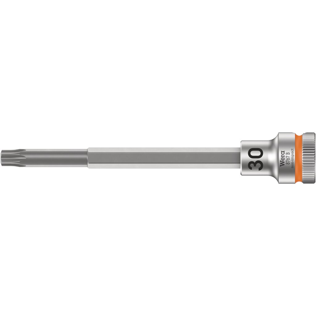 Für die Hand- und Maschinenbetätigung (non impact), mit Kugelfangrille, Rändelung am hinteren Ende für hohe Griffigkeit bei der Handbetätigung; Bitnüsse mit den Vorzügen der Wera Bit-Technologie, mattverchromt; mit 30 mm langem und extra schlankem Profilbereich für bessere Zugänglichkeit in engen Arbeitsräumen.