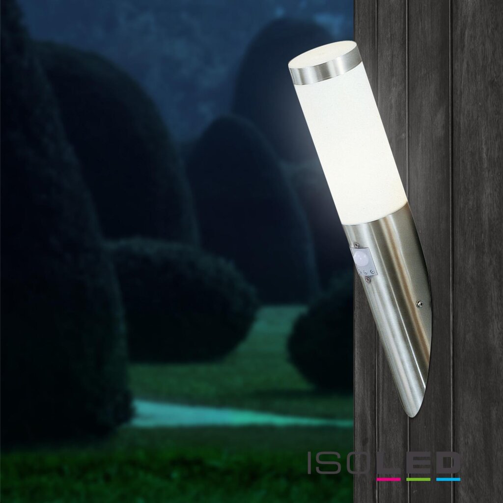 Wandleuchte Edelstahl, IP44, PIR Bewegungssensor, warmweiß, inkl. E27 LED Leuchtmittel 9W